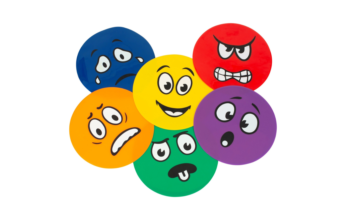 Cet ensemble coloré et attrayant contient six marqueurs de sol, chacun représentant une émotion. Ils favorisent la gestion et l'expression des différentes émotions et enseignent les bons comportements. Fabriqués en PVC résistant, souple, lavable et antidérapant, ces marqueurs de sol ronds sont parfaits pour les salles de classe, les séances de thérapie ou les activités sportives.