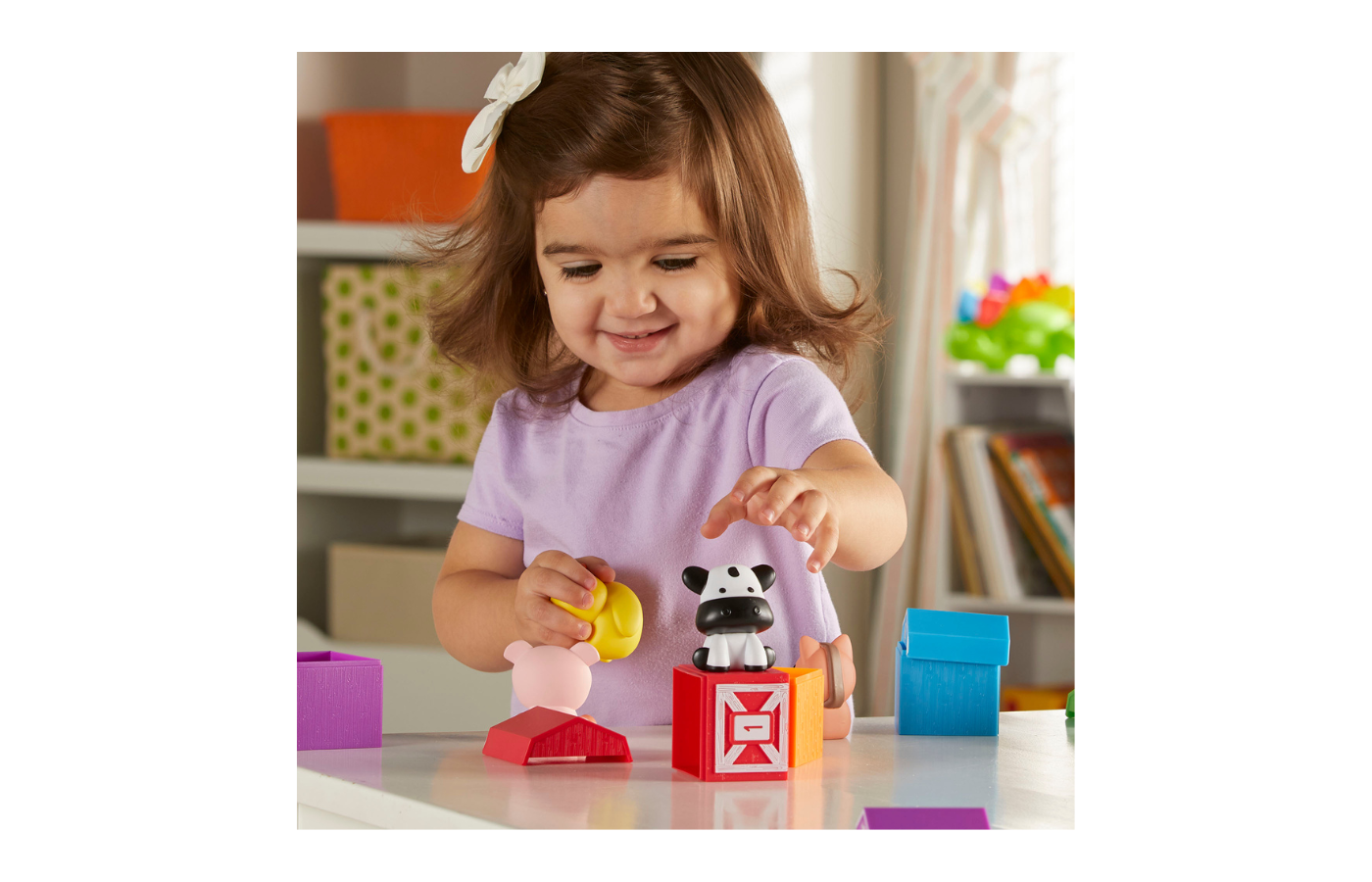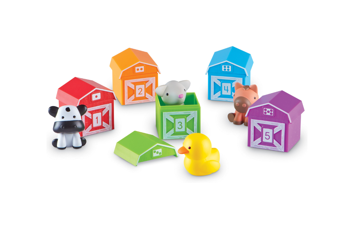 Kinderen oefenen op een speelse manier tellen, kleuren herkennen, sorteren en matchen. Daarnaast stimuleert het openen en sluiten van de schuren de fijne motoriek en hand-oogcoördinatie.
