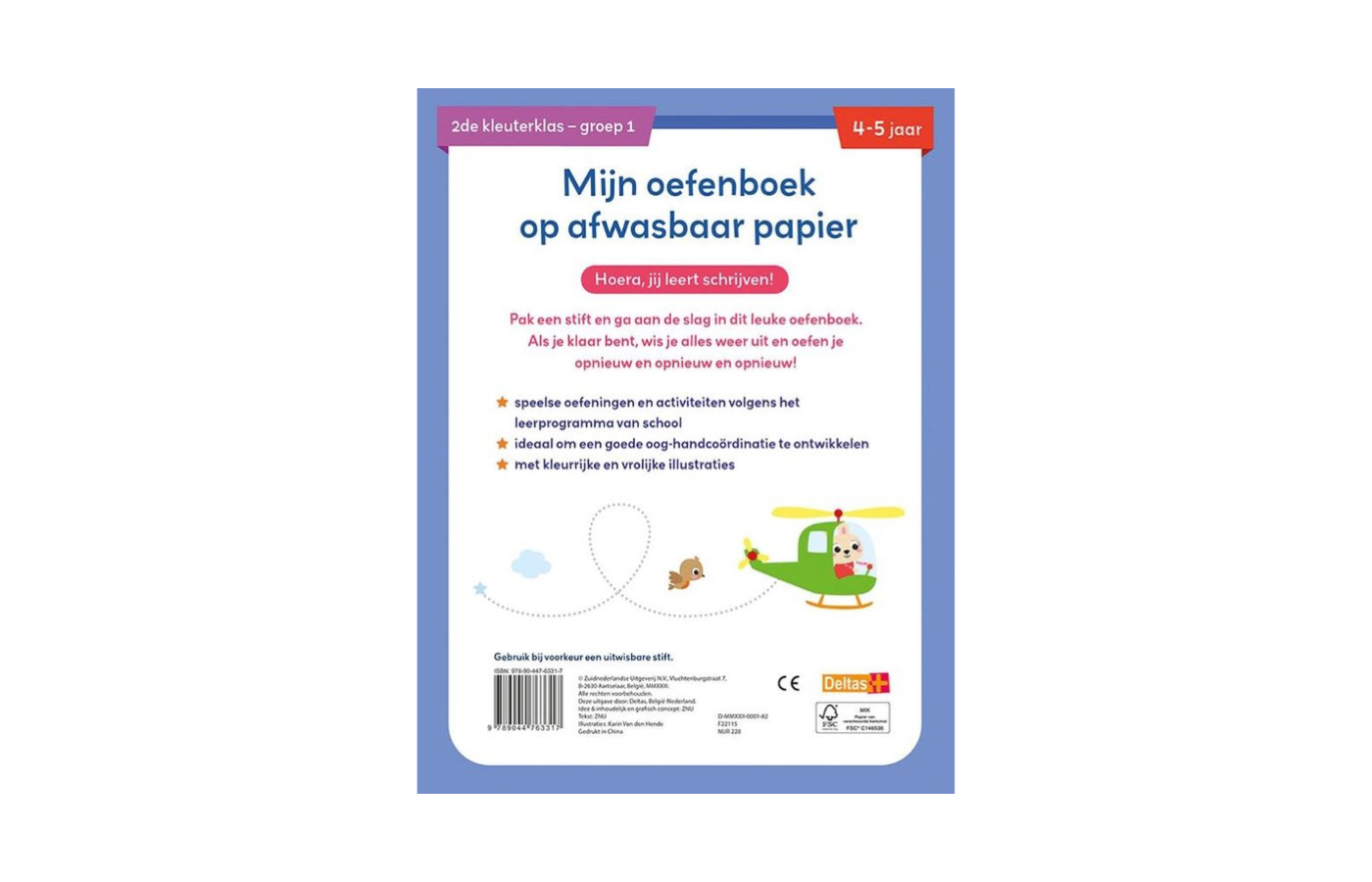 Ce joli cahier d'exercices sur papier effaçable est réutilisable et donc idéal pour les enfants qui souhaitent apprendre à écrire en jouant et exercer leur motricité fine. Laissez votre enfant faire les exercices avec un marqueur, les effacer et recommencer. Plaisir d'entraînement infini garanti !