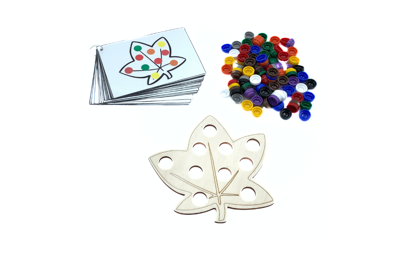 Jeu concernant l'orientation spatiale, le calcul et la motricité fine. Les enfants organisent les bouchons empilables sur la feuille d'automne en fonction des cartes de mission. Comprend 100 bouchons empilables colorés (noir, blanc, bleu, jaune, gris, marron, vert, orange, rouge et violet). La différenciation est intégrée dans les 20 cartes de mission. (à imprimer et à plastifier soi-même)