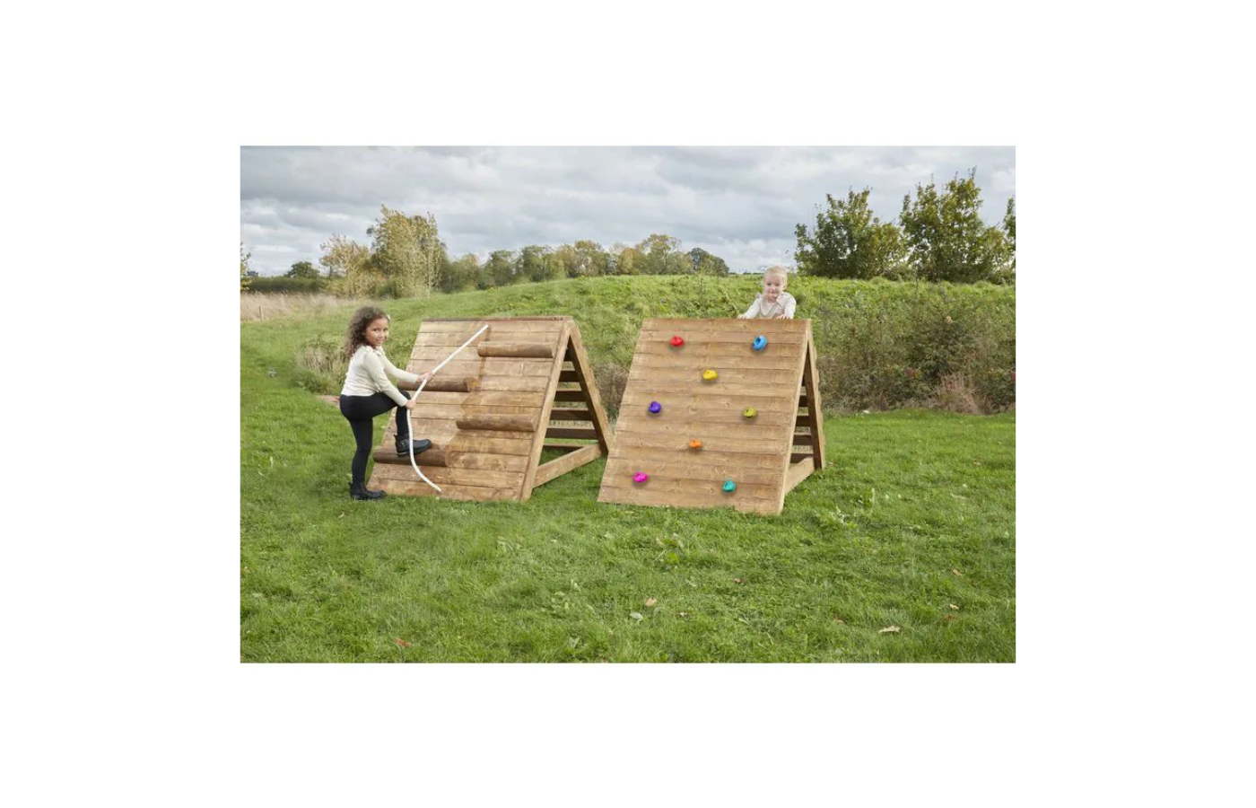 Découvrez ces 2 structures d'escalade, parfaites pour transformer votre espace extérieur en un parcours d'aventure pour les jeunes explorateurs. Avec deux structures d'escalade différentes (l'une avec une corde solide et l'autre avec des prises d'escalade), cet ensemble offre une excellente combinaison de renforcement musculaire, de coordination et de pur plaisir physique. Qu'ils grimpent vers le sommet ou fassent semblant de conquérir une montagne, les enfants bénéficient d'un entraînement complet tout en renforçant leur confiance en eux et leurs compétences en travail d'équipe, tout en favorisant leur développement physique.