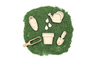 Formes de jeu ou plateaux de jeu sur le thème du jardin potager. Quatre figures différentes sur le thème du jardin potager (petite pelle, arrosoir, carotte et pot de fleurs). Parfait à remplir avec des matériaux secs tels que du riz à jouer, des pois chiches, du sable fin,... dans un format mignon.