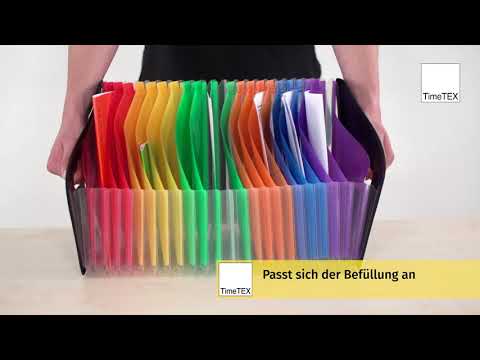 Avec ce support de dossiers debout, les documents peuvent être rangés de manière ordonnée, à portée de main et bien triés sur le bureau. Les 23 compartiments colorés s'adaptent de manière flexible au contenu. Lorsqu'ils sont complètement remplis, ils s'étendent jusqu'à 56 cm. Les compartiments peuvent également contenir du matériel laminé jusqu'au format A4. Grâce aux couleurs, un système de codage couleur est également possible, par exemple, par priorité, compartiment ou groupe. Les dossiers contiennent des onglets d'enregistrement avec des étiquettes à insérer. Des poignées sur les côtés permettent un transport facile.