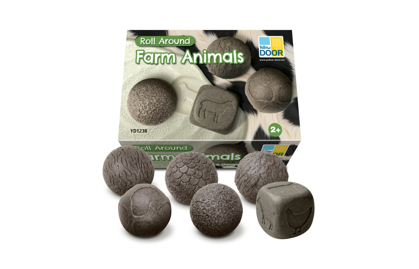 Ces rouleaux attrayants représentent des animaux familiers de la ferme et de l'étang : vache, mouton, poule, poisson et chèvre. Conçu pour éveiller la curiosité et développer la motricité fine, ce coffret comprend cinq rouleaux texturés révélant différents motifs d'animaux et un tampon pour identifier l'animal.