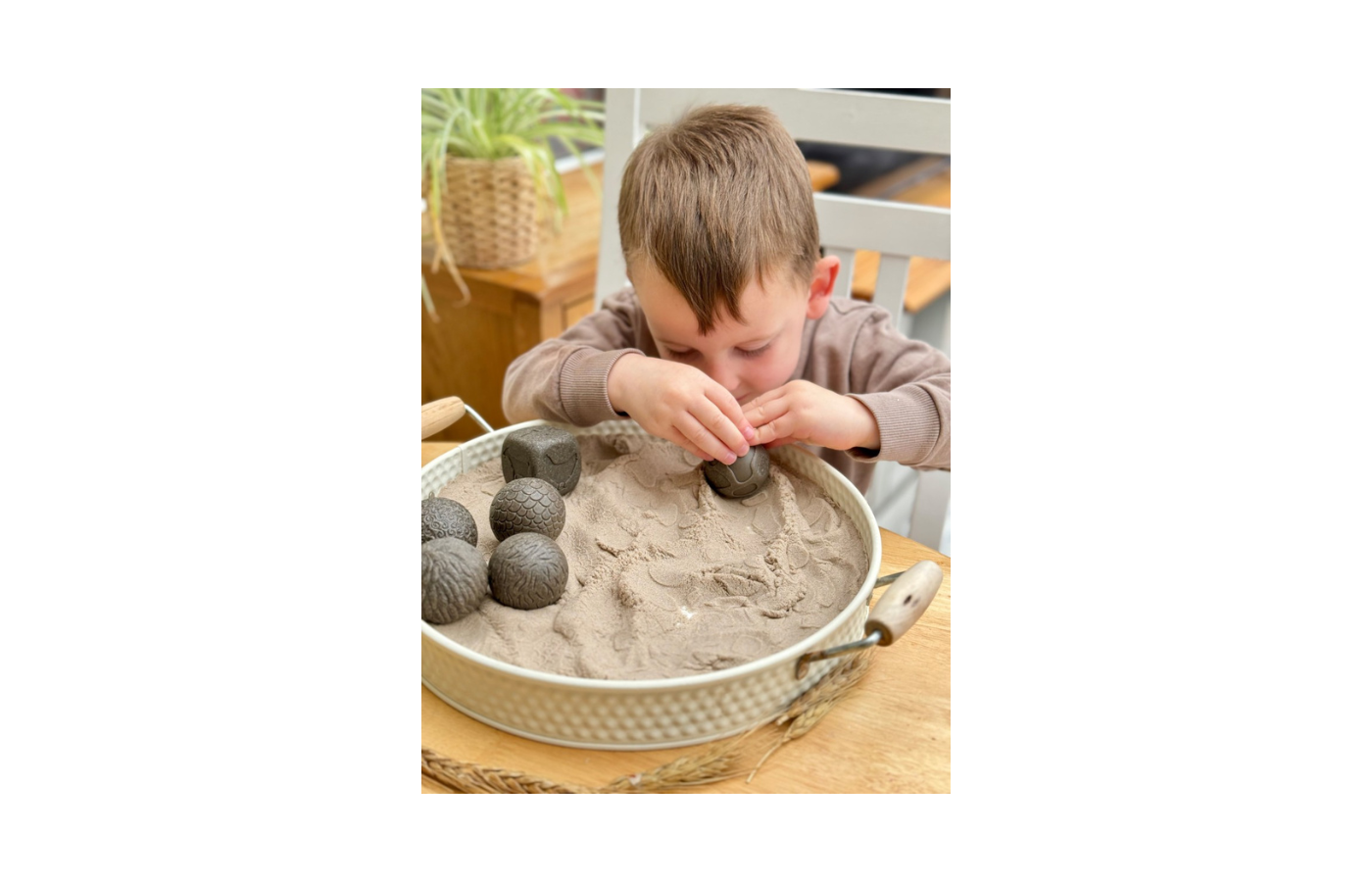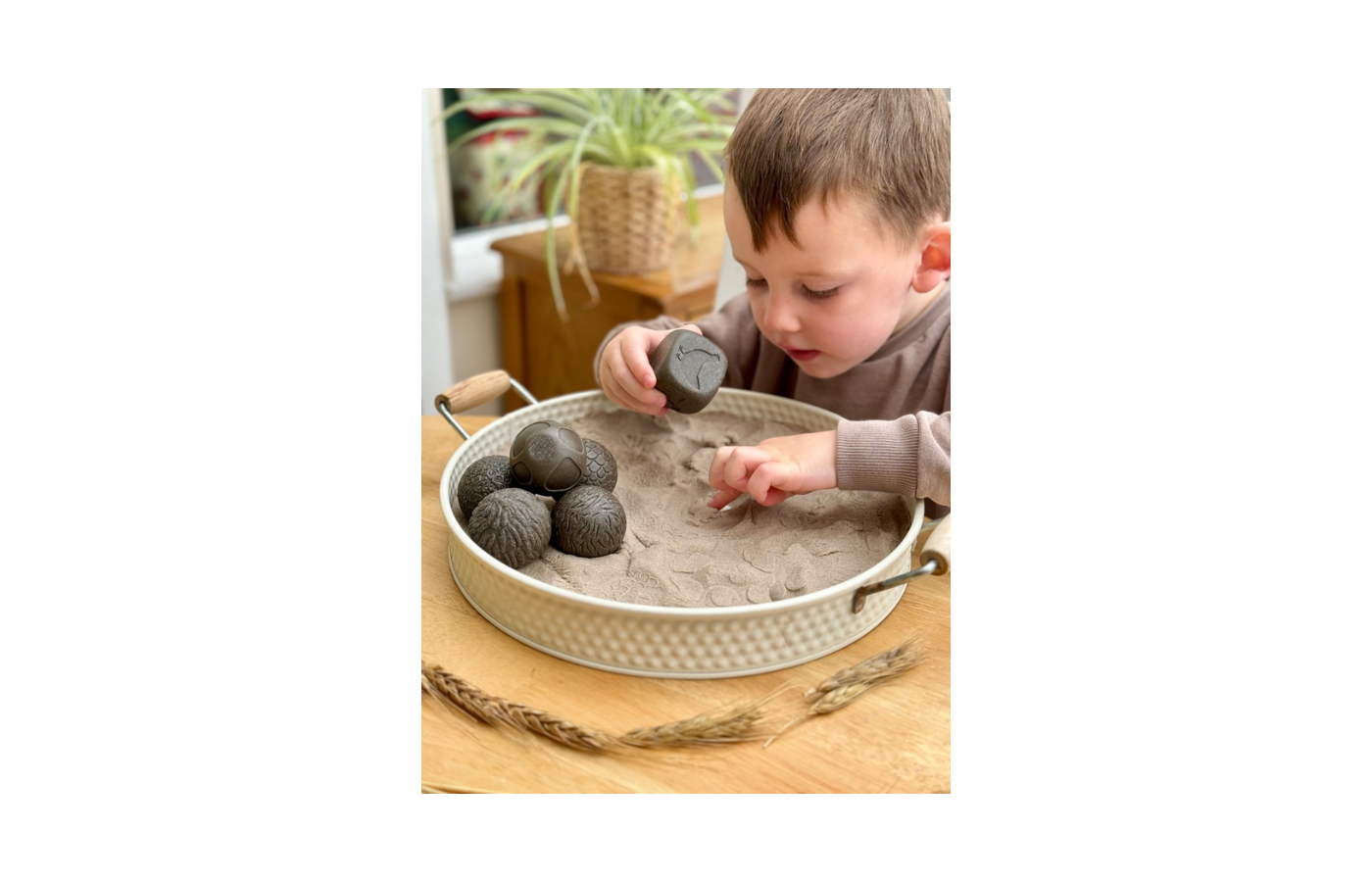 En roulant et en tamponnant, les enfants renforcent leur motricité fine et créent des motifs sensoriels fascinants.