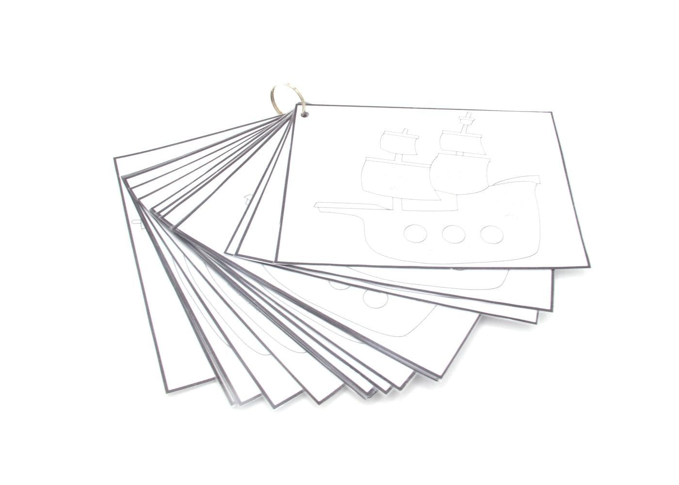 Jeu de motricité fine en rapport avec l'orientation spatiale. Peux-tu placer les accessoires de pirate au bon endroit ? Cela peut se faire sur la base de (20) cartes de mission. La différenciation est intégrée dans les cartes de mission. (à imprimer et à plastifier soi-même.)