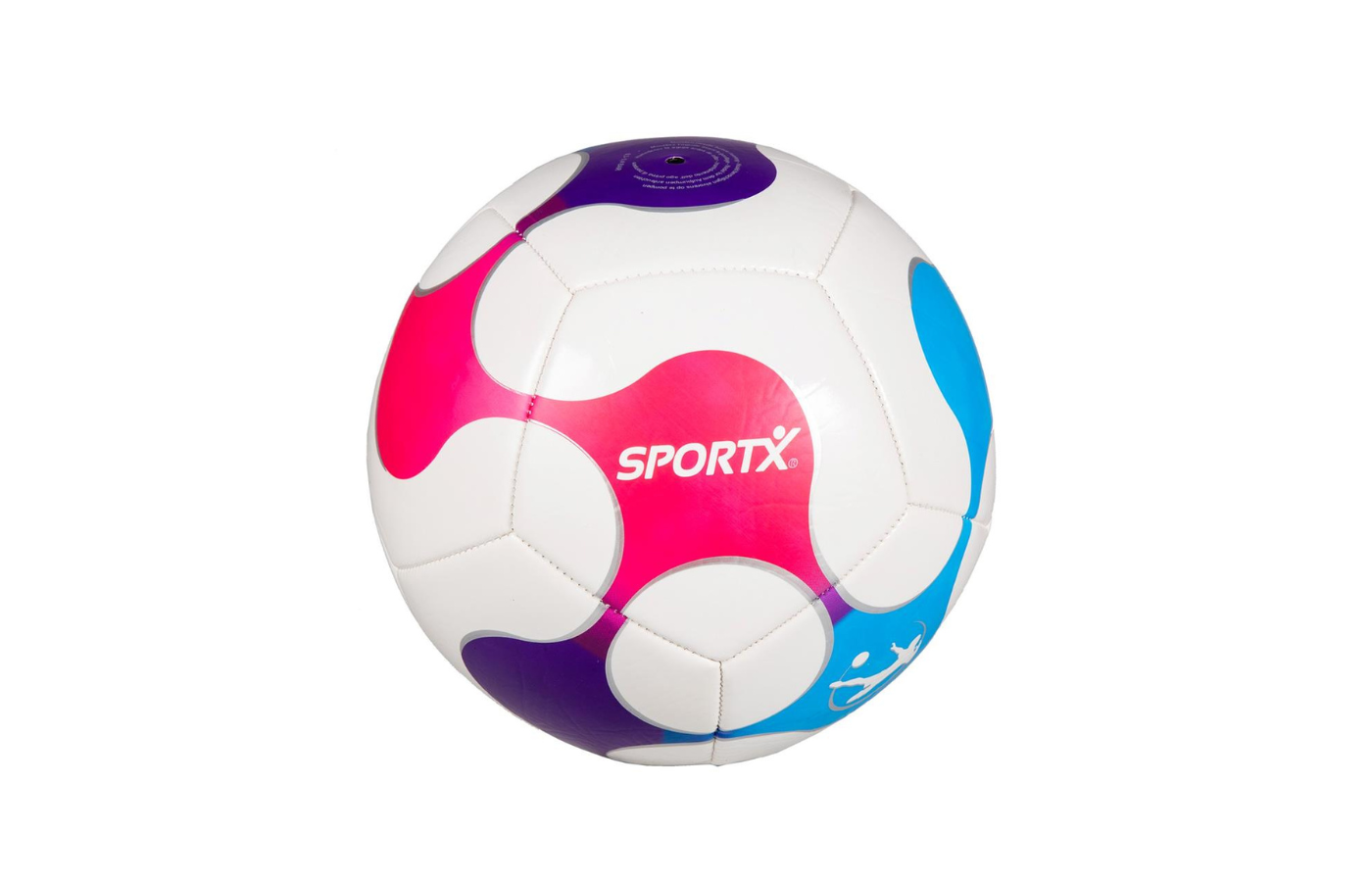 Liquid football, en version blanche avec un imprimé en forme liquide en bleu, rose et violet.