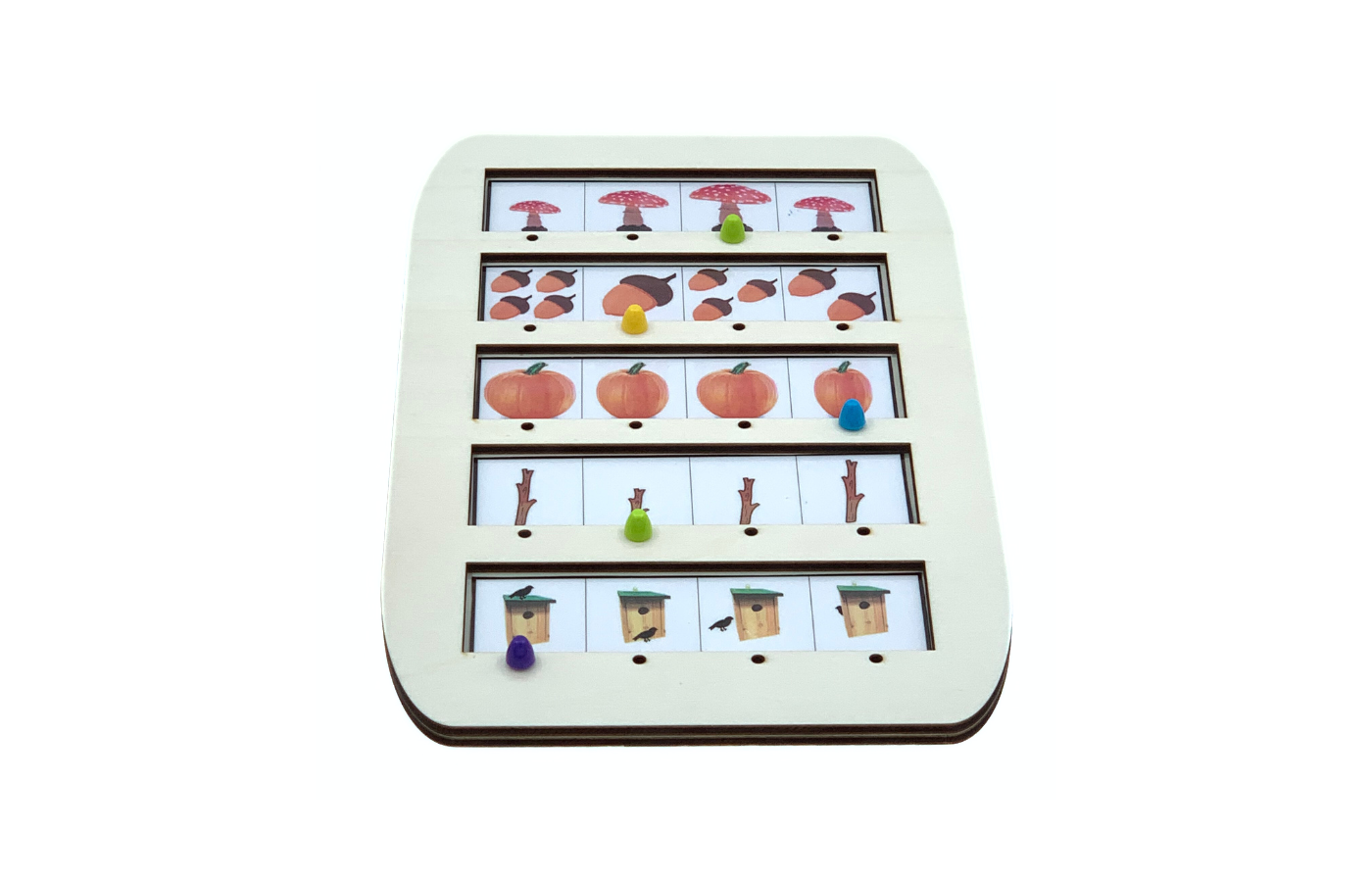 Vous pouvez en tant qu'enseignant donner différentes tâches. Placez la perle jaune près du plus petit champignon. Placez la perle bleue près du plus grand champignon.