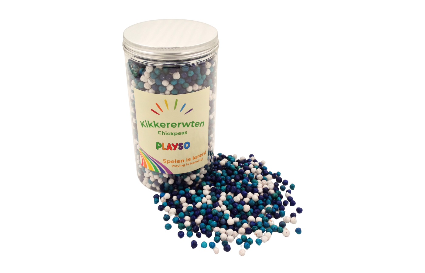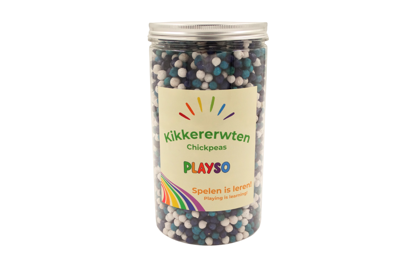 Deze gekleurde kikkererwten zijn een echte topper voor sensorisch spel, telactiviteiten en open-einde spel. Dankzij hun vrolijke kleuren en fijne textuur prikkelen ze de zintuigen én de fantasie van kinderen. Perfect voor kleine handjes om te voelen, scheppen, sorteren en ontdekken!