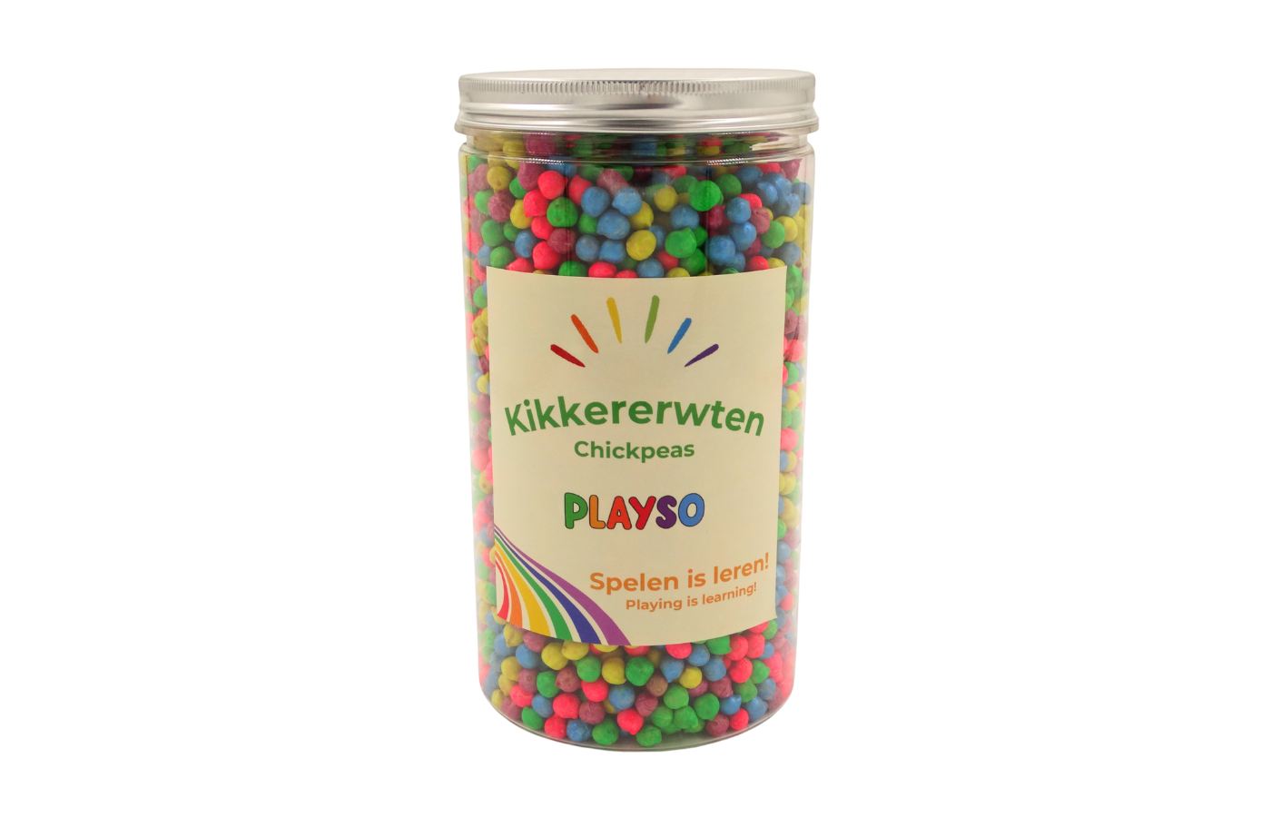 Deze gekleurde kikkererwten zijn een echte topper voor sensorisch spel, telactiviteiten en open-einde spel. Dankzij hun vrolijke kleuren en fijne textuur prikkelen ze de zintuigen én de fantasie van kinderen. Perfect voor kleine handjes om te voelen, scheppen, sorteren en ontdekken!