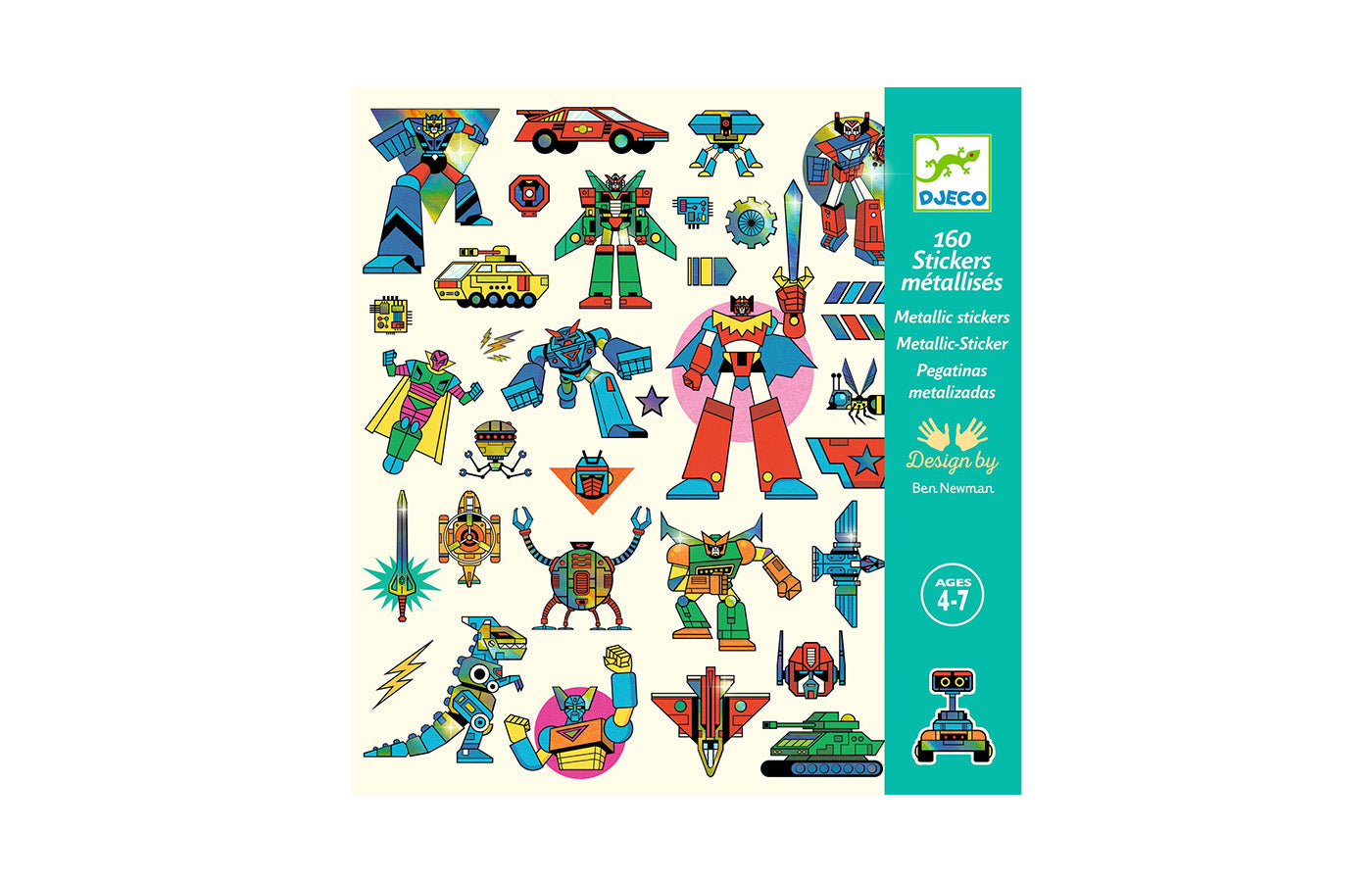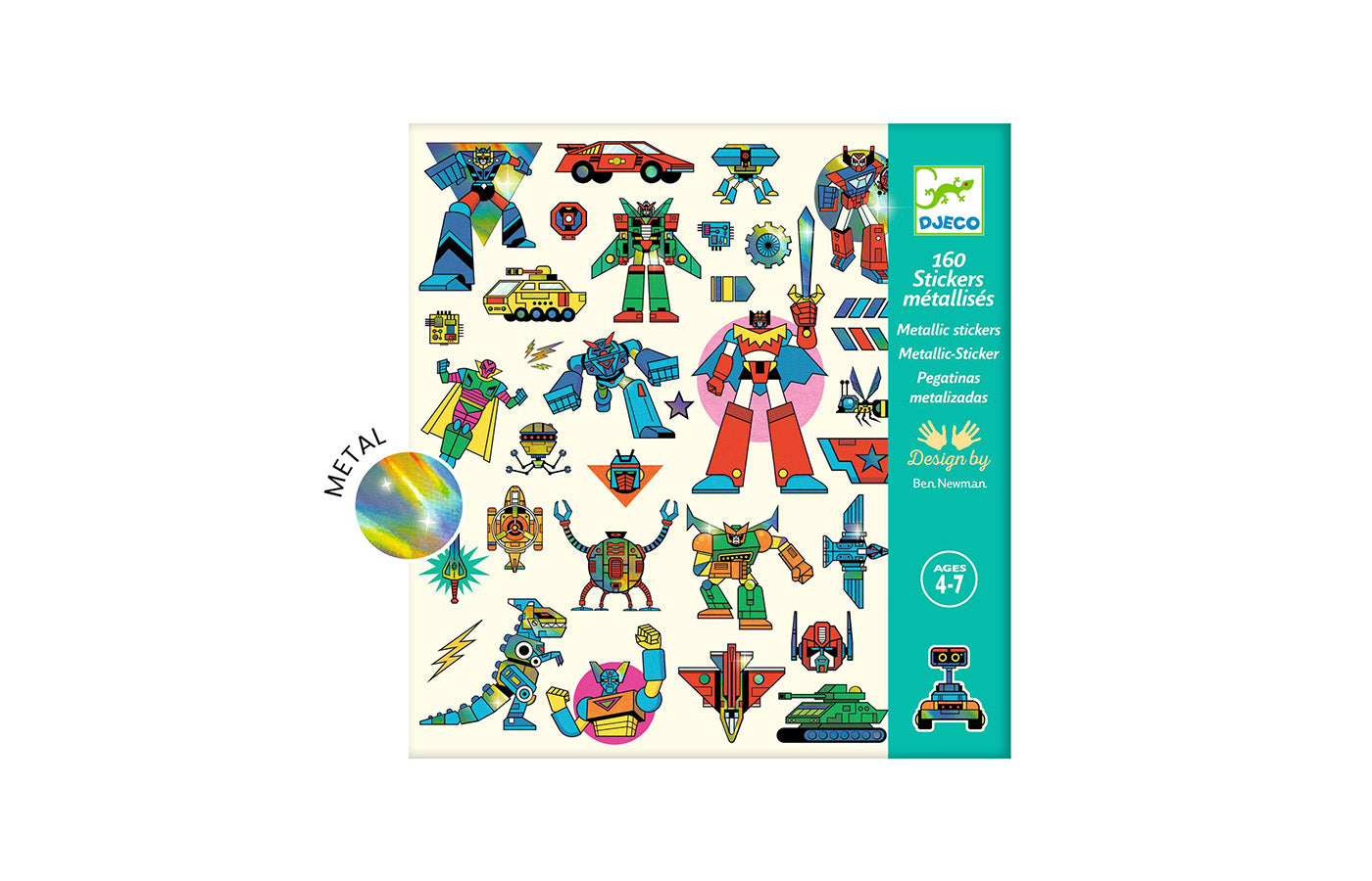 160 autocollants métalliques - robots (4 feuilles - 2 x 2) (dimensions de l'emballage 22 x 23 cm)