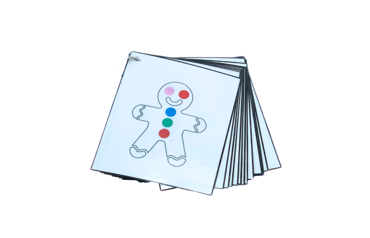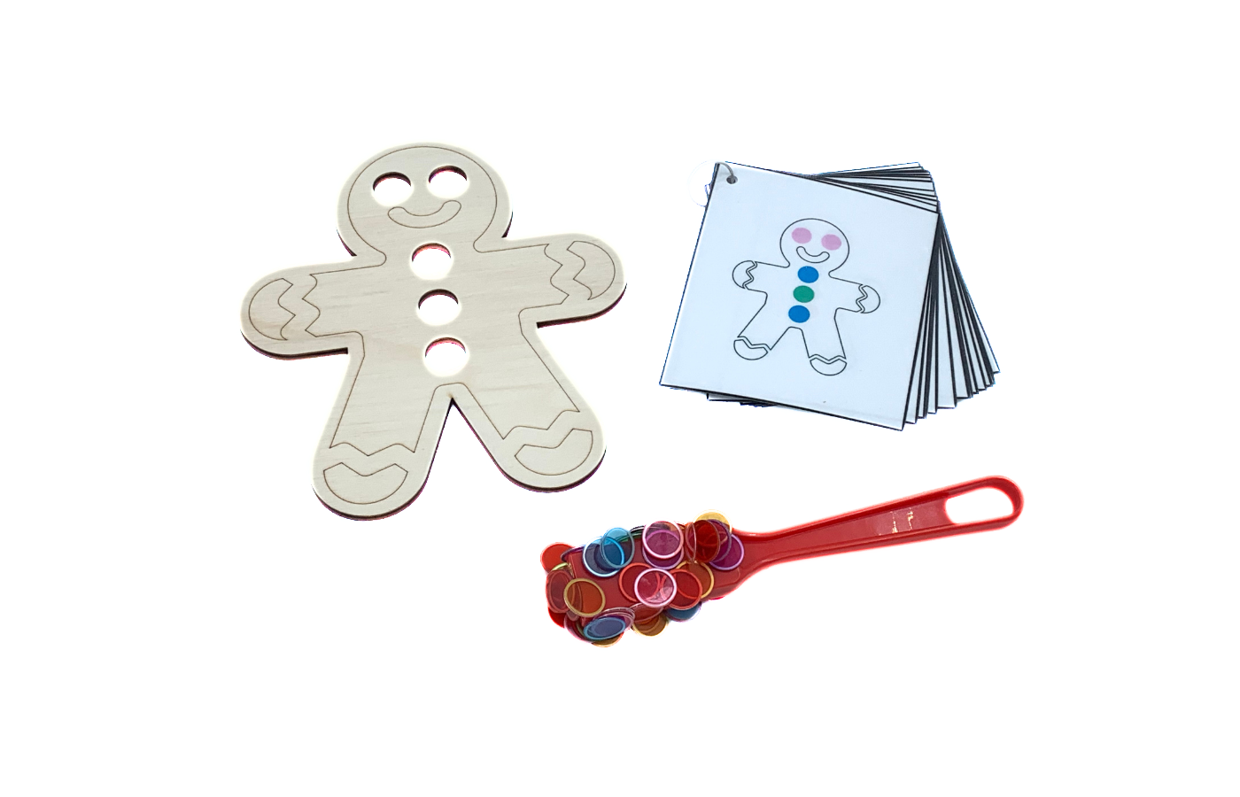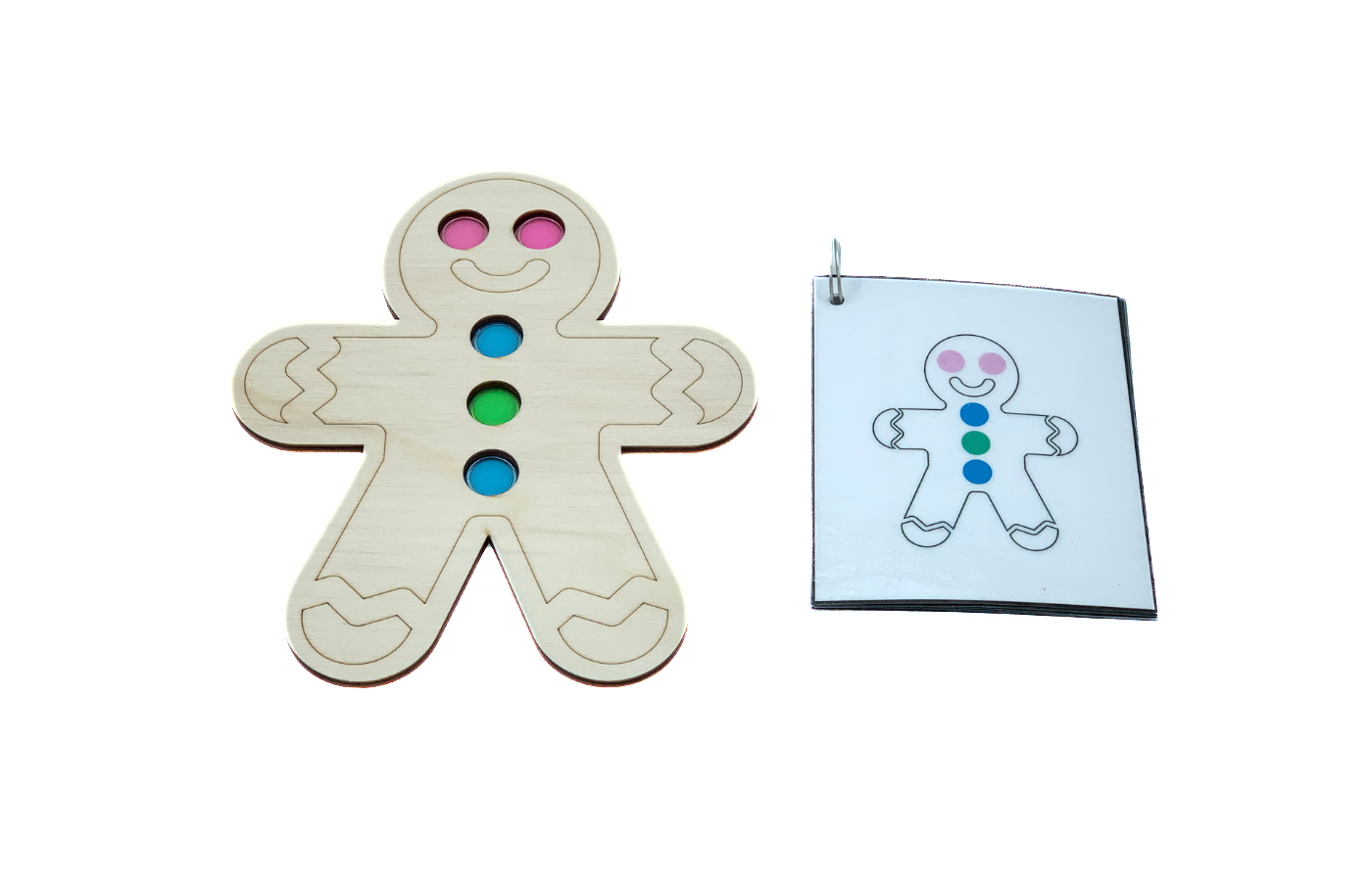 Jeu de motricité fine en rapport avec l'orientation spatiale. Décore le bonhomme en pain d'épice avec tes couleurs préférées ! Les enfants organisent les fiches magnétiques sur le bonhomme en pain d'épice en fonction des cartes de mission.