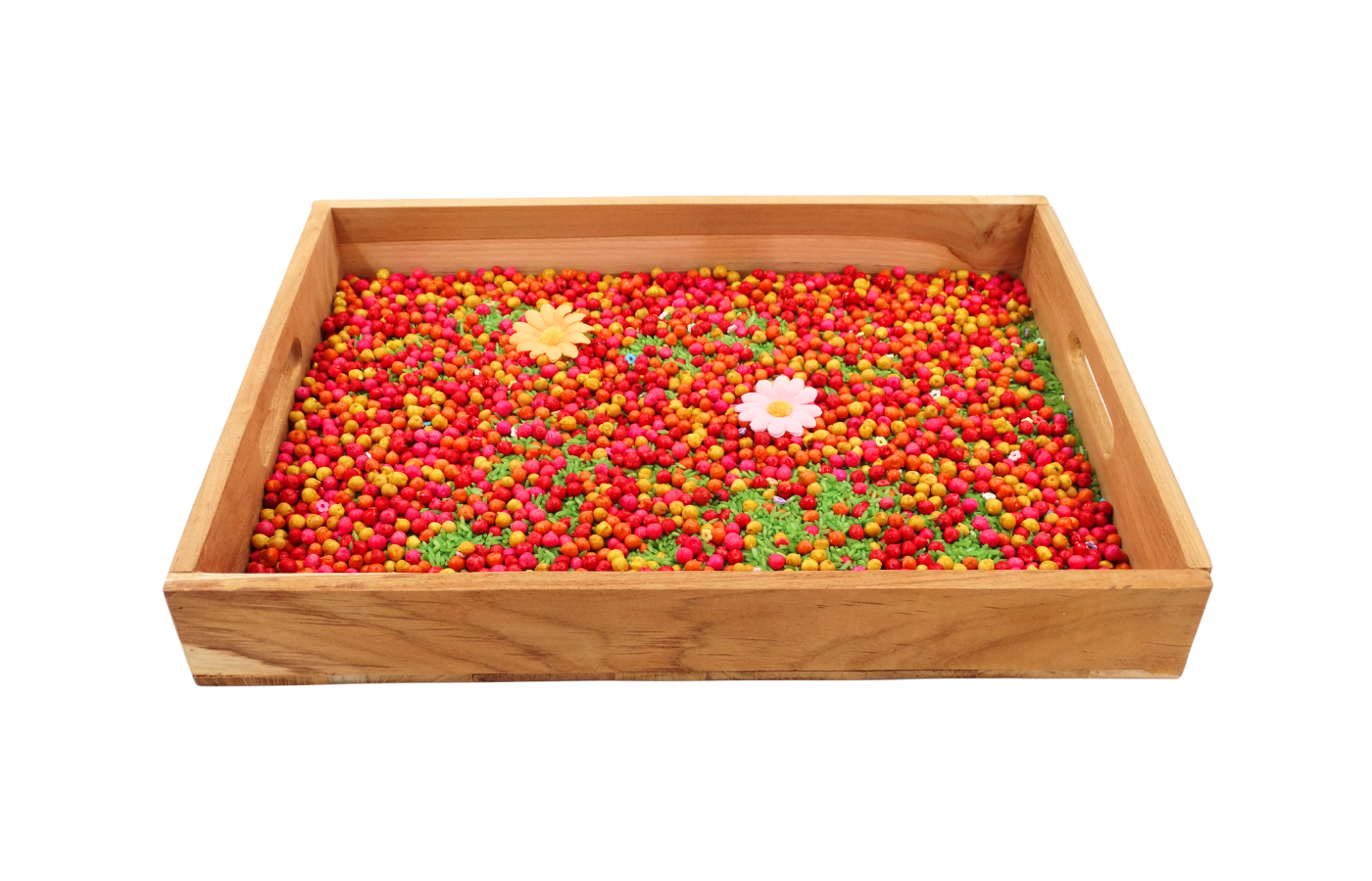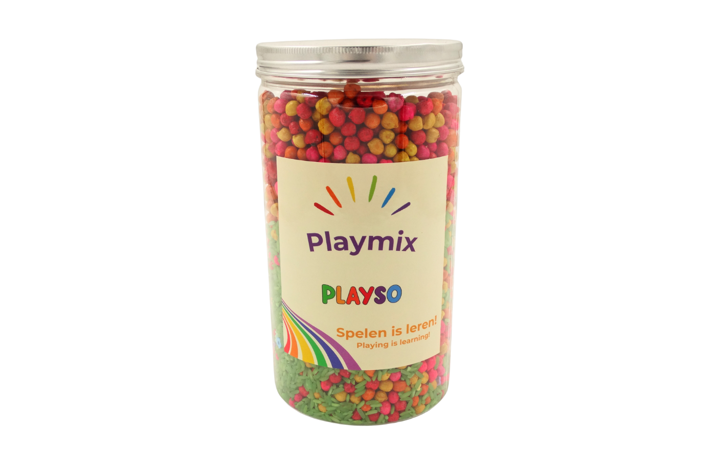 Deze gekleurde kikkererwten in combinatie met rijst en fillers zijn een echte topper voor sensorisch spel, telactiviteiten en open-einde spel. Dankzij hun vrolijke kleuren en fijne textuur prikkelen ze de zintuigen én de fantasie van kinderen. Perfect voor kleine handjes om te voelen, scheppen, sorteren en ontdekken!