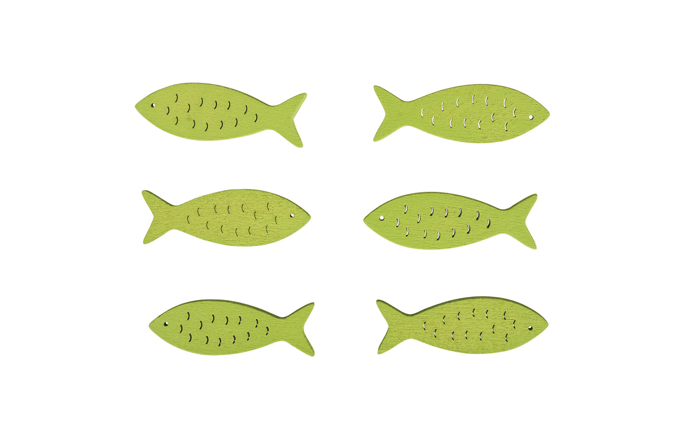 Un sachet de 6 bâtonnets de décoration en forme de poisson de couleur vert tilleul. À utiliser comme décoration ou pour le bricolage.