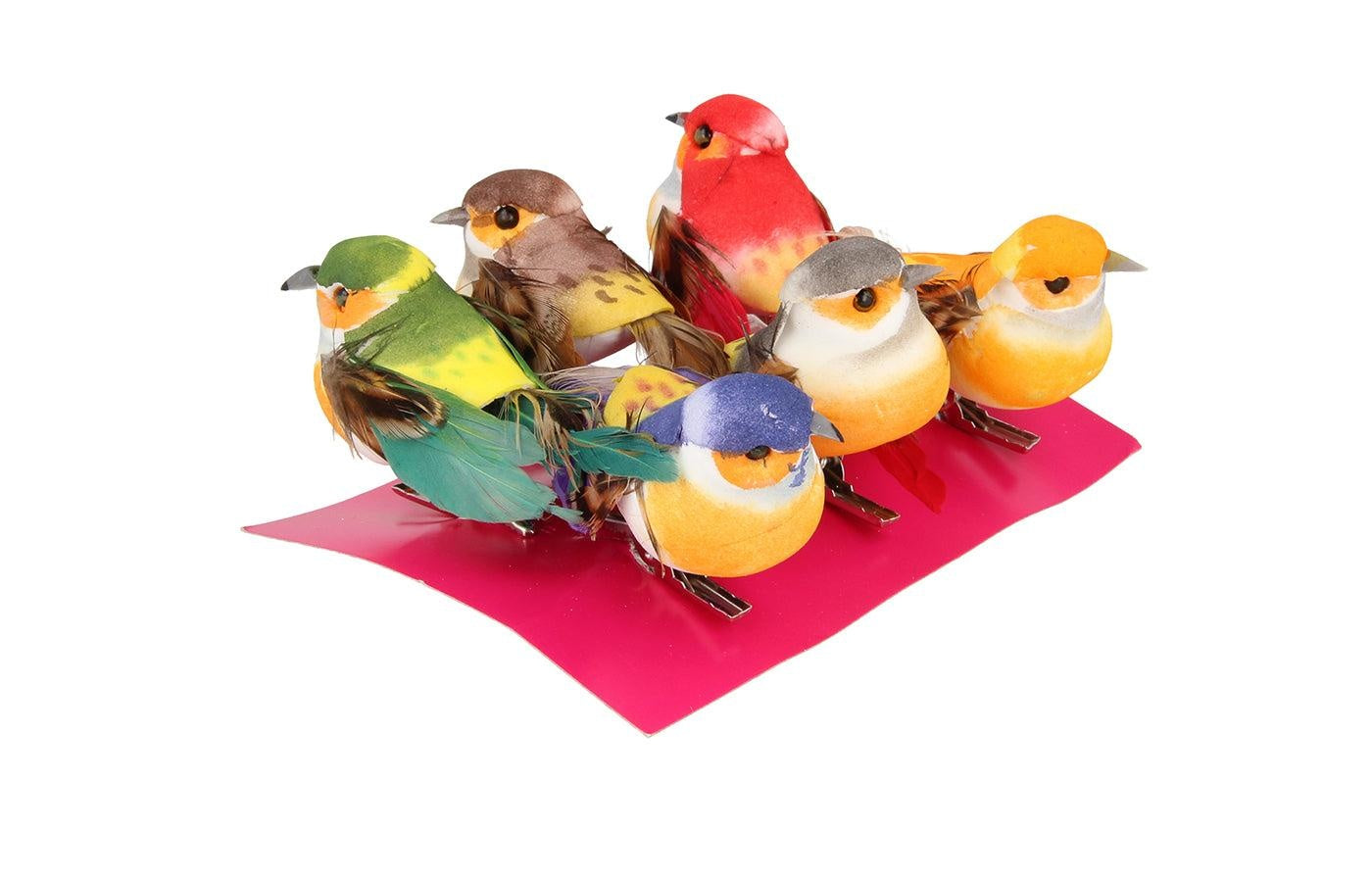 Ensemble de 6 oiseaux colorés sur un clip, joli comme décoration ou comme accessoire supplémentaire pour la table de narration ou thématique.