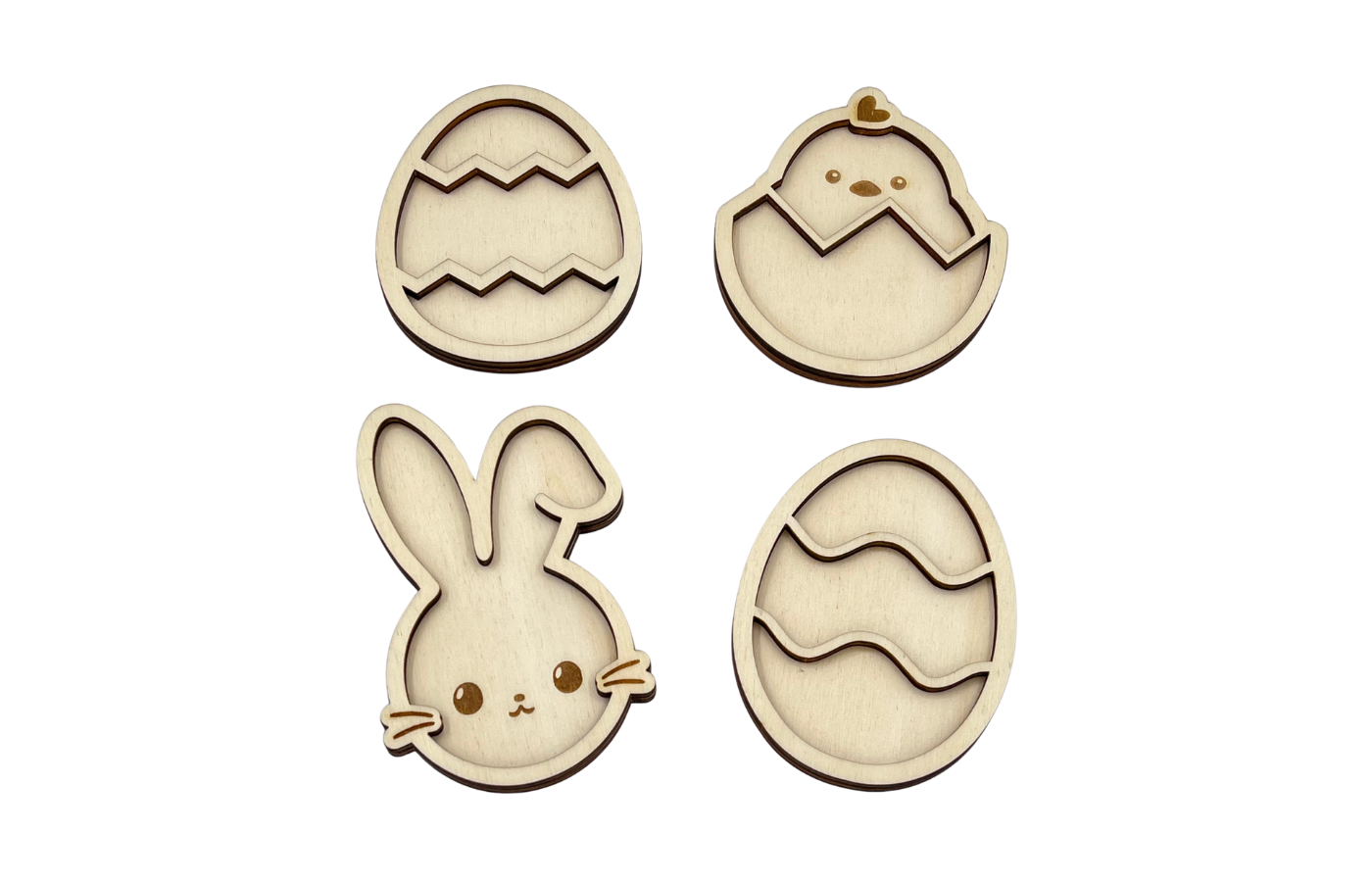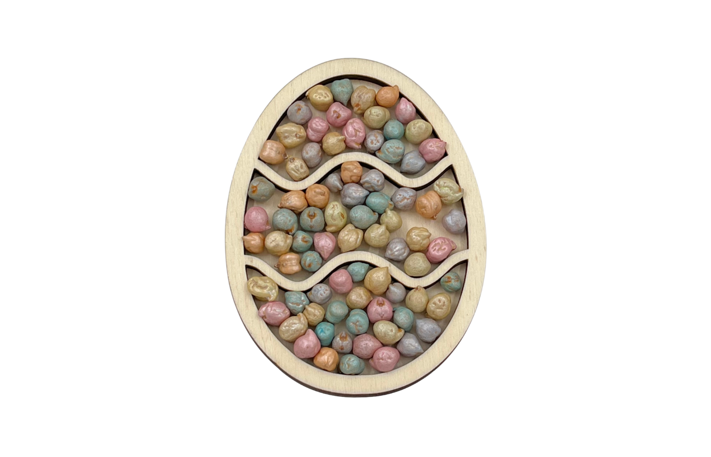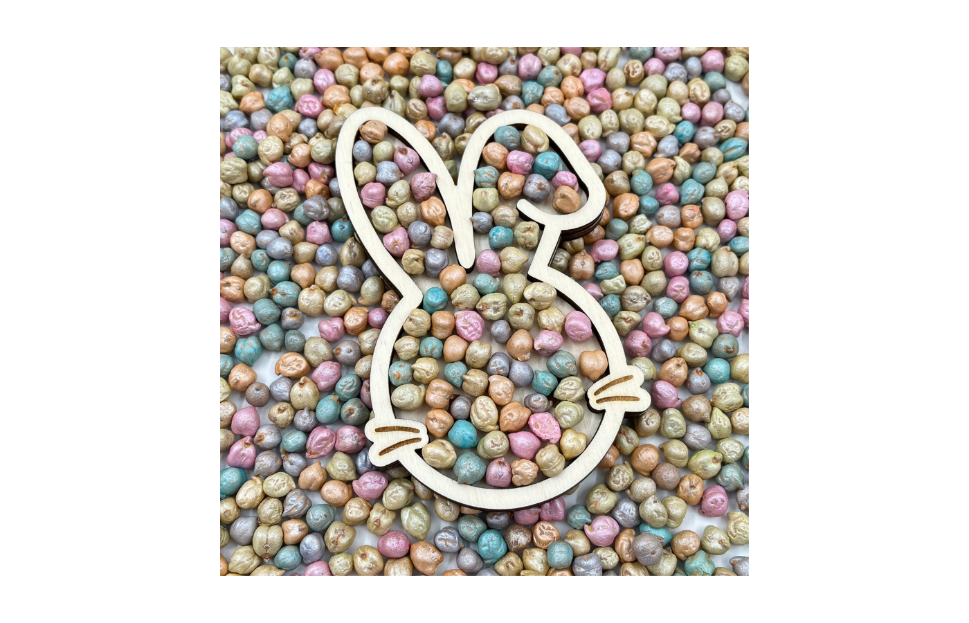 Formes de vul et plateaux de jeu sur le thème de Pâques (deux œufs, un lapin de Pâques et un poussin sortant d'un œuf). Parfait à remplir avec des matériaux secs tels que du riz à jouer, des pois chiches, du sable fin,... Dans un format mignon.