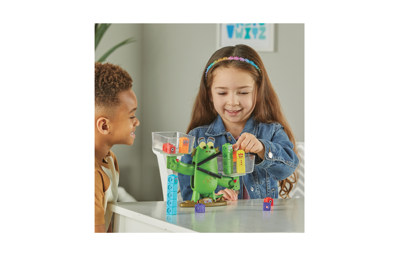 Met deze slimme balans kunnen kinderen hoeveelheden vergelijken terwijl Blockzee haar ogen, armen en mond beweegt. De emmers zijn stevig en helder, perfect voor het opbergen van Numberblocks. De kleurrijke activiteitenkaarten helpen kinderen bij het ontwikkelen van wiskundige vaardigheden, zoals nummerherkenning en tellen.