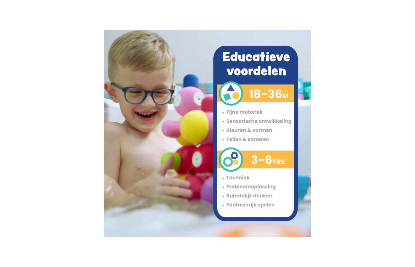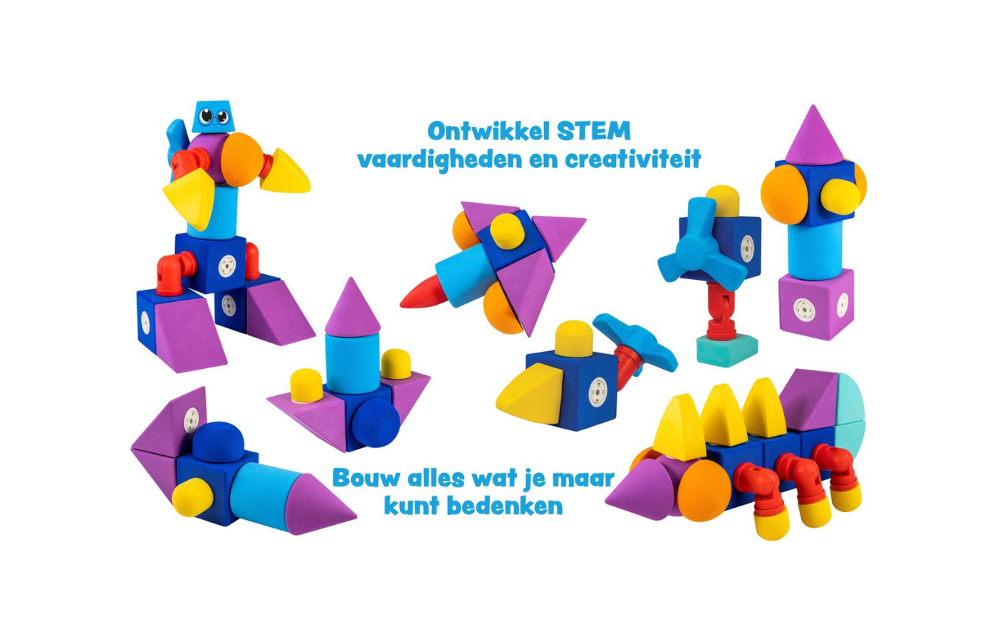 Met deze zachte magnetische schuimrubberen bouwstenen kunnen kinderen creatiever bouwen dan ooit tevoren. Het innovatieve magneetsysteem verbindt de blokken elke keer op magische wijze met elkaar. De bouwstenen stoten elkaar nooit af en bieden eindeloze speelmogelijkheden! De schuimrubberen bouwstenen drijven op water en blijven magnetisch kleven aan metalen badkuipen. De blokken zijn gemakkelijk schoon te maken, ze kunnen gewoon in het bovenste vak van de vaatwasser – en ze blinken weer als nieuw!
