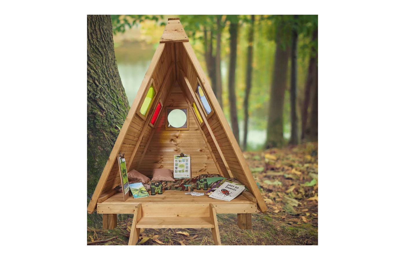 Maak kennis met dit schuilhuis. Het is de ultieme schuilplaats voor jonge avonturiers! Met ingebouwde ramen voor het observeren van de natuur, biedt het een gezellig hoekje voor rustige tijd en fantasierijk spel. Eenvoudig te monteren en perfect om nieuwsgierigheid en leren te bevorderen, het verandert uw buitenruimte in een betoverende ruimte.