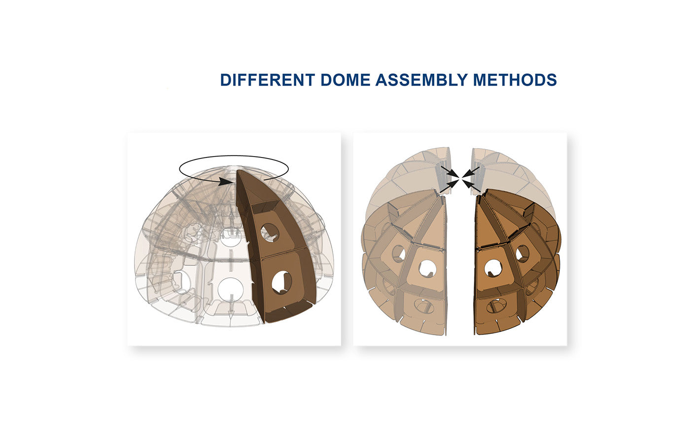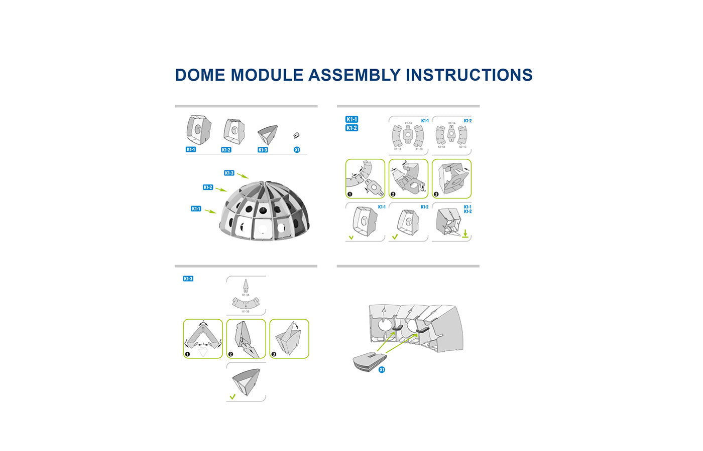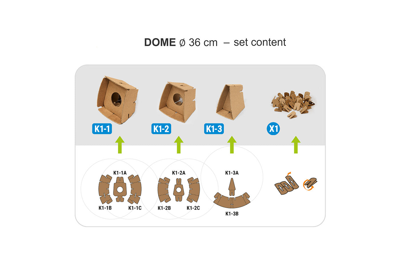 Card Blocks zijn bouwblokken van karton om zelf in elkaar te zetten. De combinatie van een Block met een origineel ontwerp en een bijzondere Connector geeft ongekende mogelijkheden om ruimtelijke vormen te bouwen. De gemonteerde koepel heeft een diameter van 36 cm.