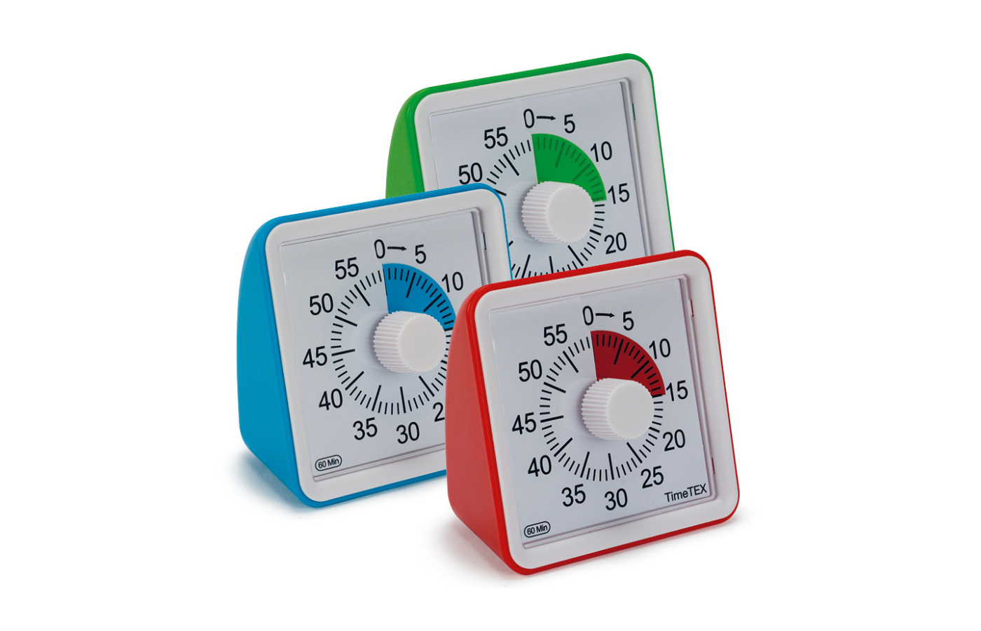 Deze compacte TimeTEX Timer toont de leerlingen tot op de minuut nauwkeurig hoeveel tijd er nog rest voor het afronden van een opdracht of hoe lang de les nog duurt. Hij is volkomen geluidloos. Door de brede bodem staat hij stevig op z'n plaats. Bijzonder is, dat de tijd wordt weergeven op een normale wijzerplaat, die de kinderen kennen van een gewone klok. De gekleurde schijf loopt terug. De visuele, analoge weergave van de resterende tijd door het blauwe veld laat in één oogopslag de tijdsinformatie zien, zonder dat de concentratie op de eigenlijke opdracht eronder te lijden heeft. Aan het eind van de ingestelde looptijd klinkt een signaal, dat je kan instellen wat betreft aflooptijd en volume.
