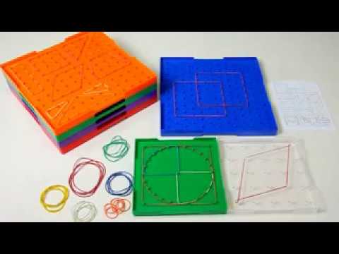 Met deze geo-borden kan je het ruimtelijk inzicht en de oriëntatie stimuleren terwijl je tegelijk de fijne motoriek oefent. De kinderen plaatsen de elastiekjes over de pinnen en maken zo de voorbeelden na of bedenken zelf figuren.
