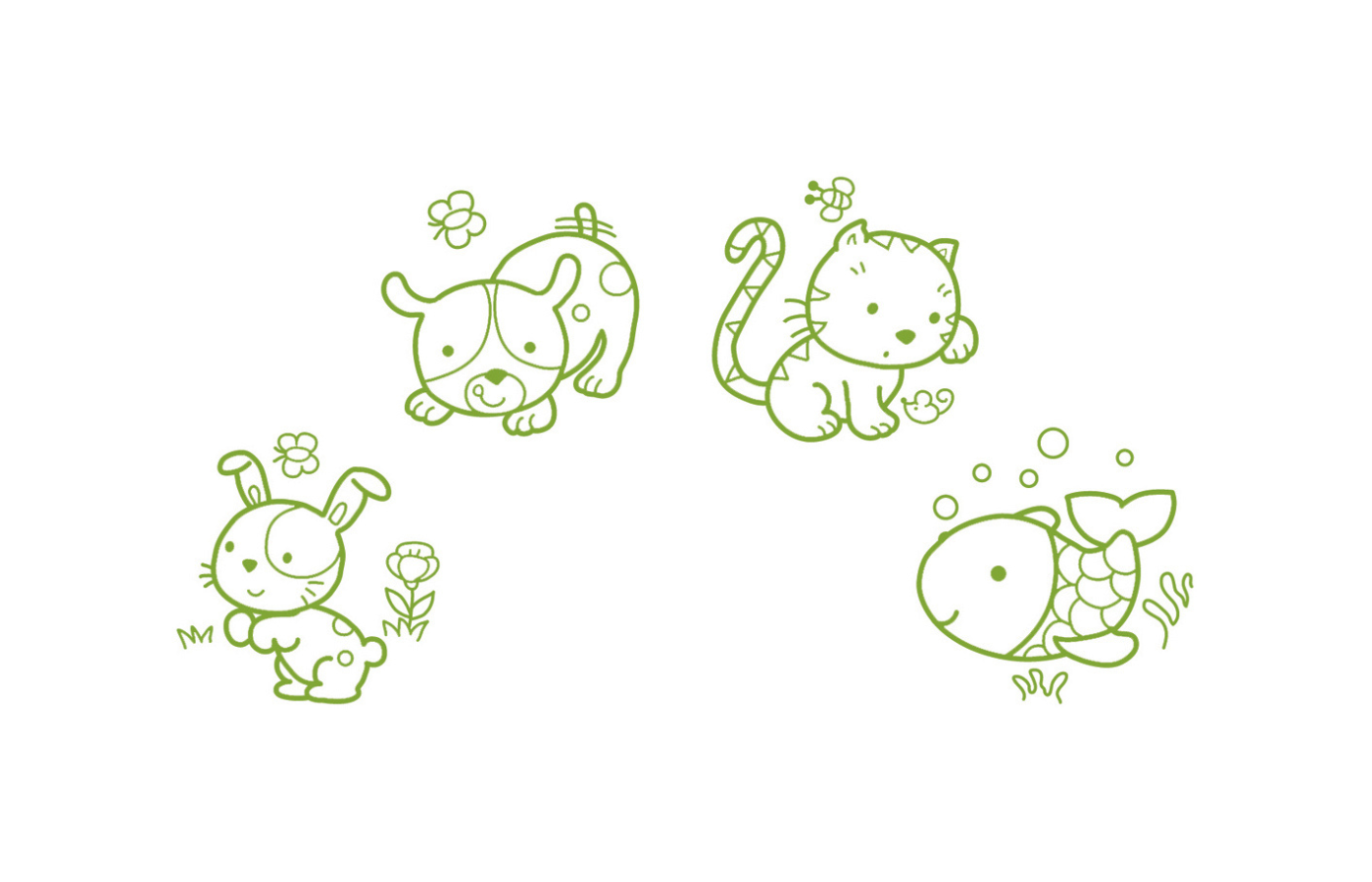 4 ergonomische stempels - huisdieren (afm. diam. 5 cm)