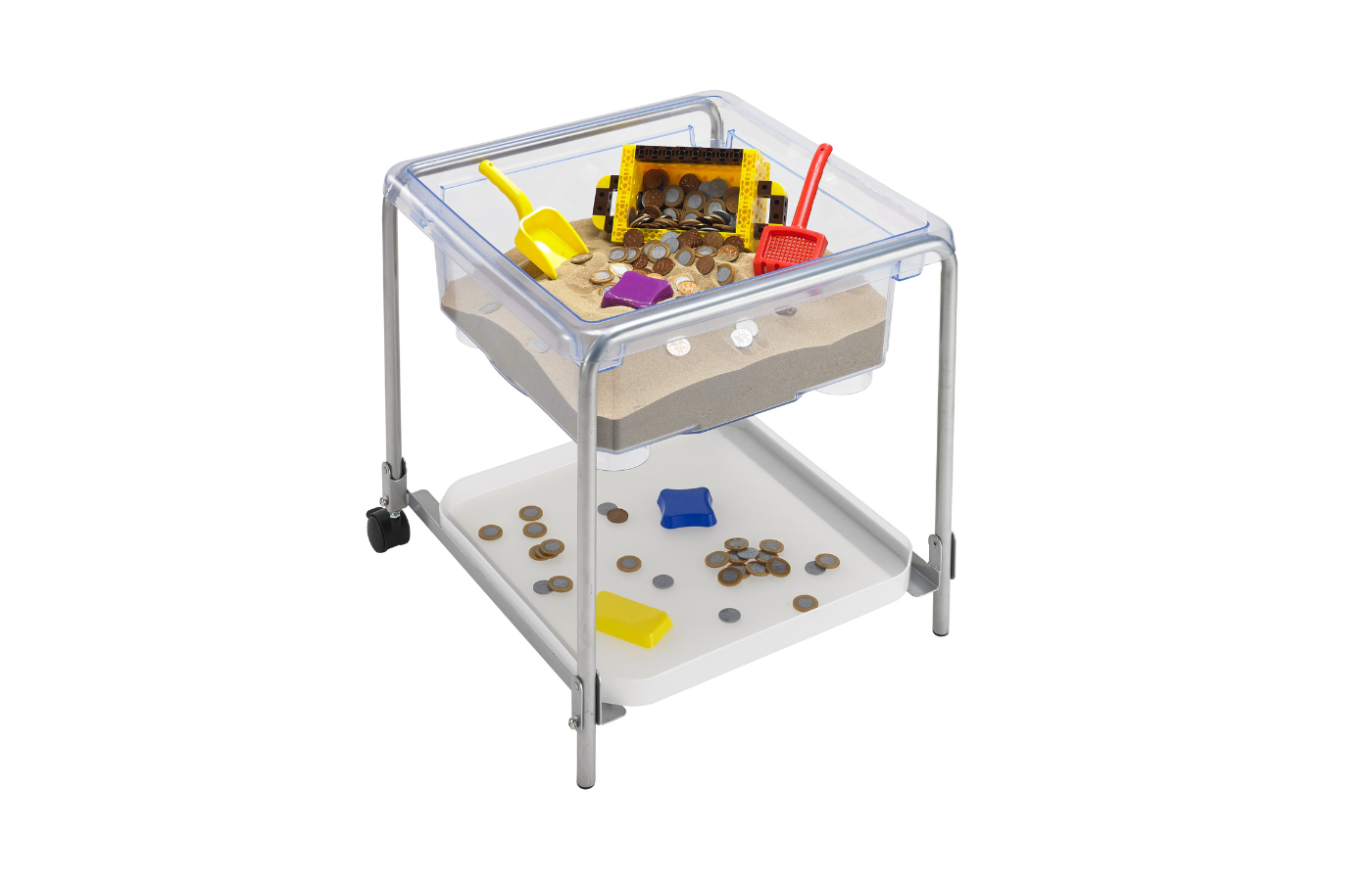 Zeer stevige (doorzichtige) Fun 2 Play activiteiten tray. Deze activiteiten tray biedt kinderen vele speelmogelijkheden. Het kan gebruikt worden als knutsel-, zand-, water- of zelfs lichttafel. Vul de tray met water of zand en sluit hem af met de dop. Dankzij de afvoer laat je het water snel en schoon weglopen. De set bestaat uit een activiteiten tray en aparte tray.