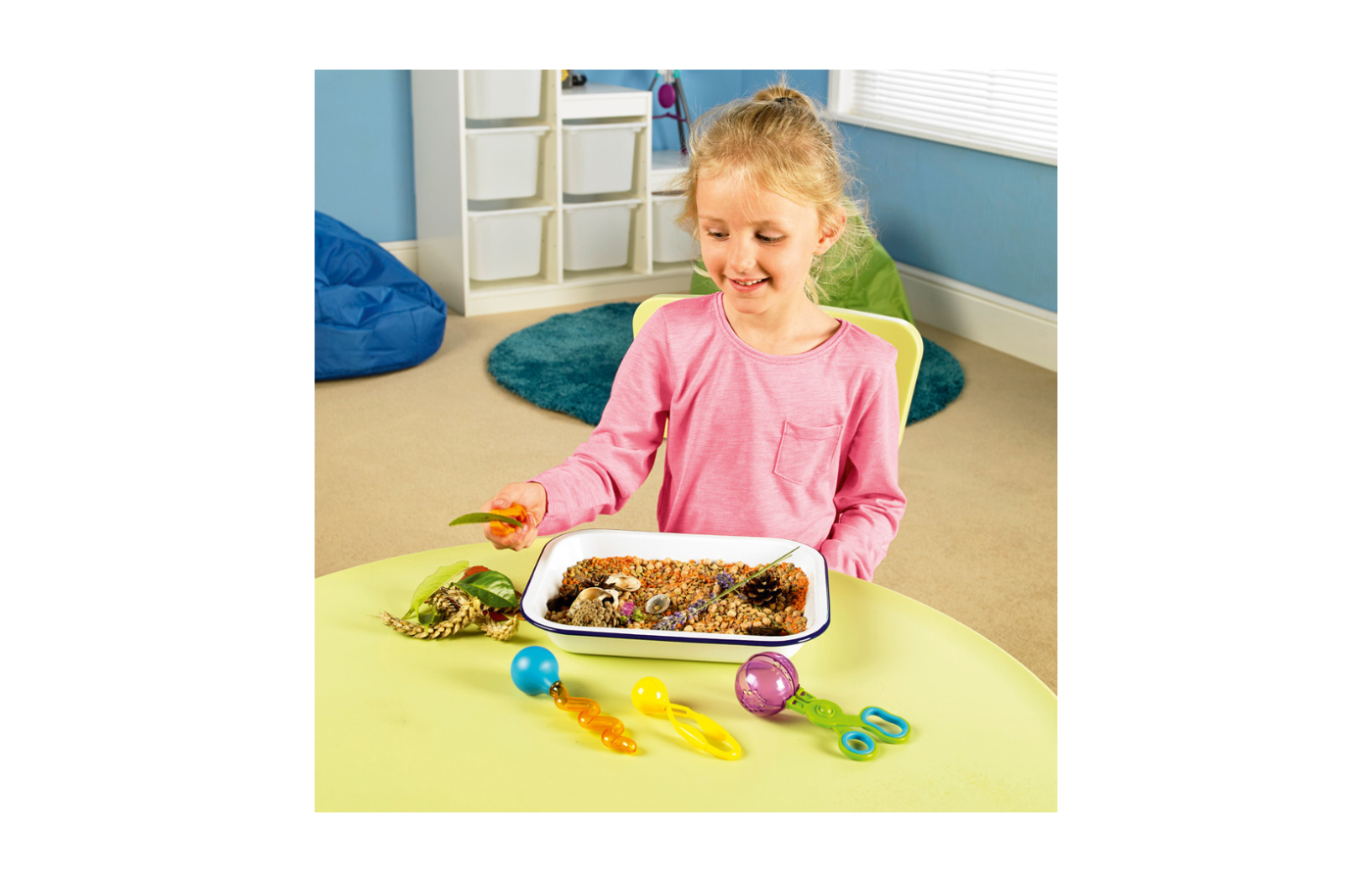 Deze Handy Tools set bestaat uit 4 verschillende tools die de fijne motoriek bevorderen. Een handy scooper, twisty druppelaar, squeezy pincet en krokodil pincet.