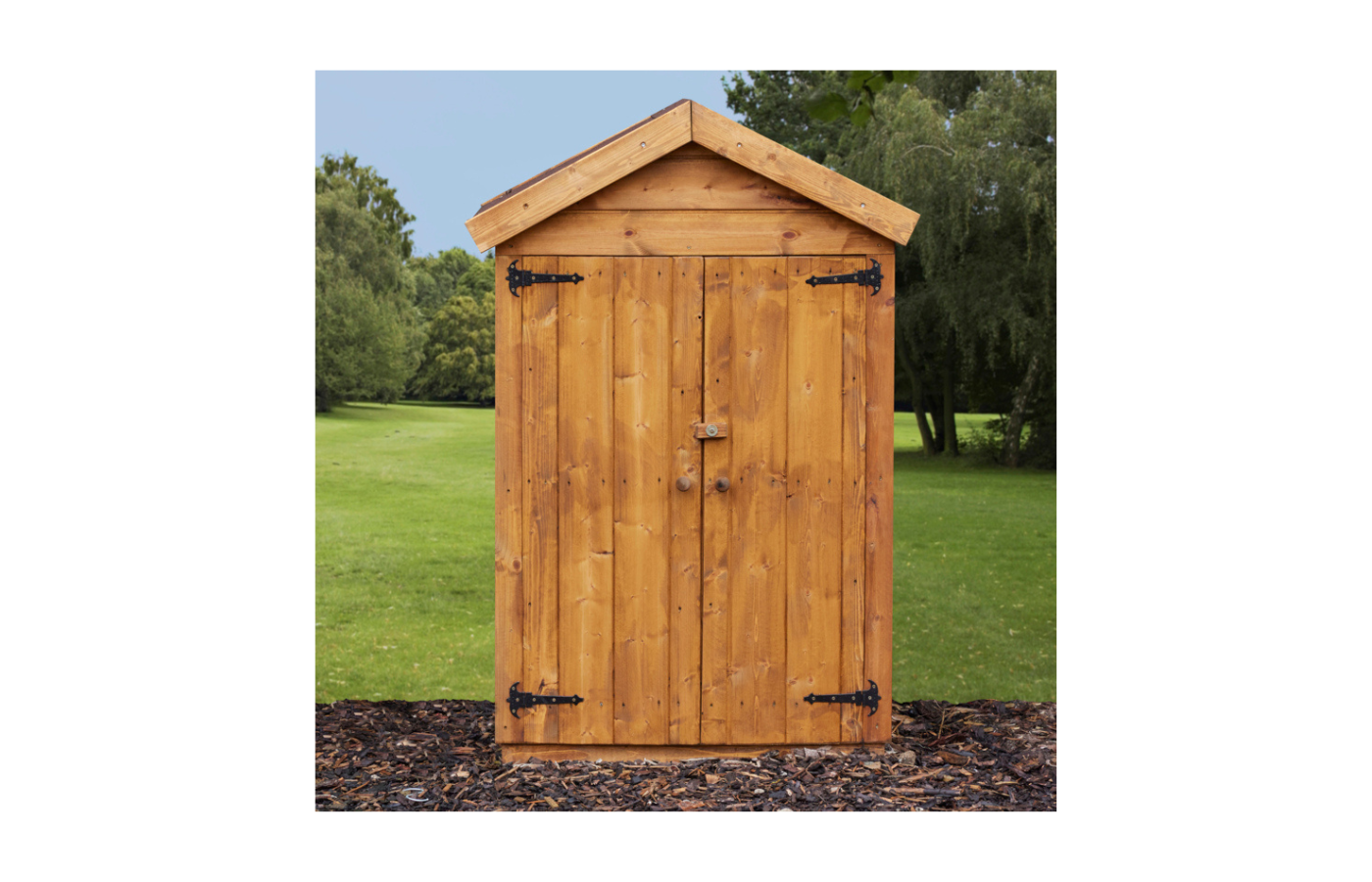 3 houten opberghuizen (afm. h 130 x b 90 x d 70 cm)
