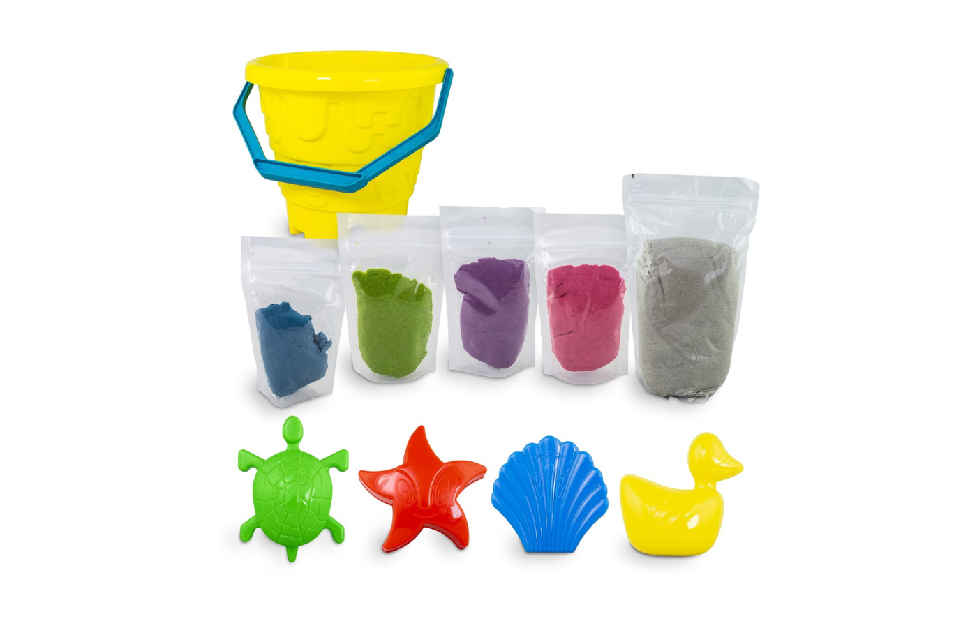 Breng kleur en creativiteit in het spel van je kinderen met deze gekleurde dynamische zandset, een plezierige en educatieve toevoeging aan binnen activiteiten!