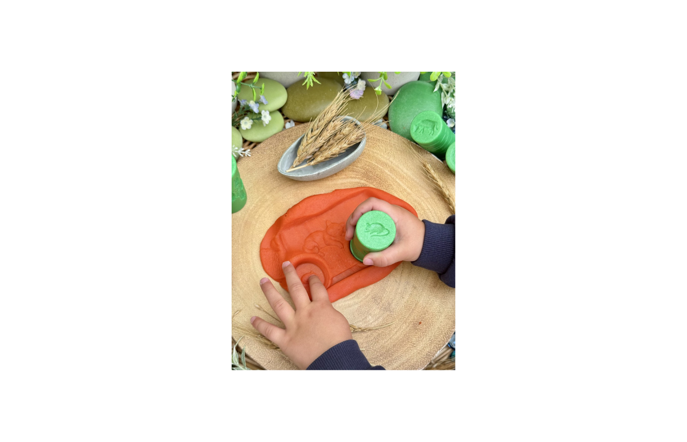 Druk en rol met deze rollers in deeg, klei, zand om prachtige scènes te maken.
