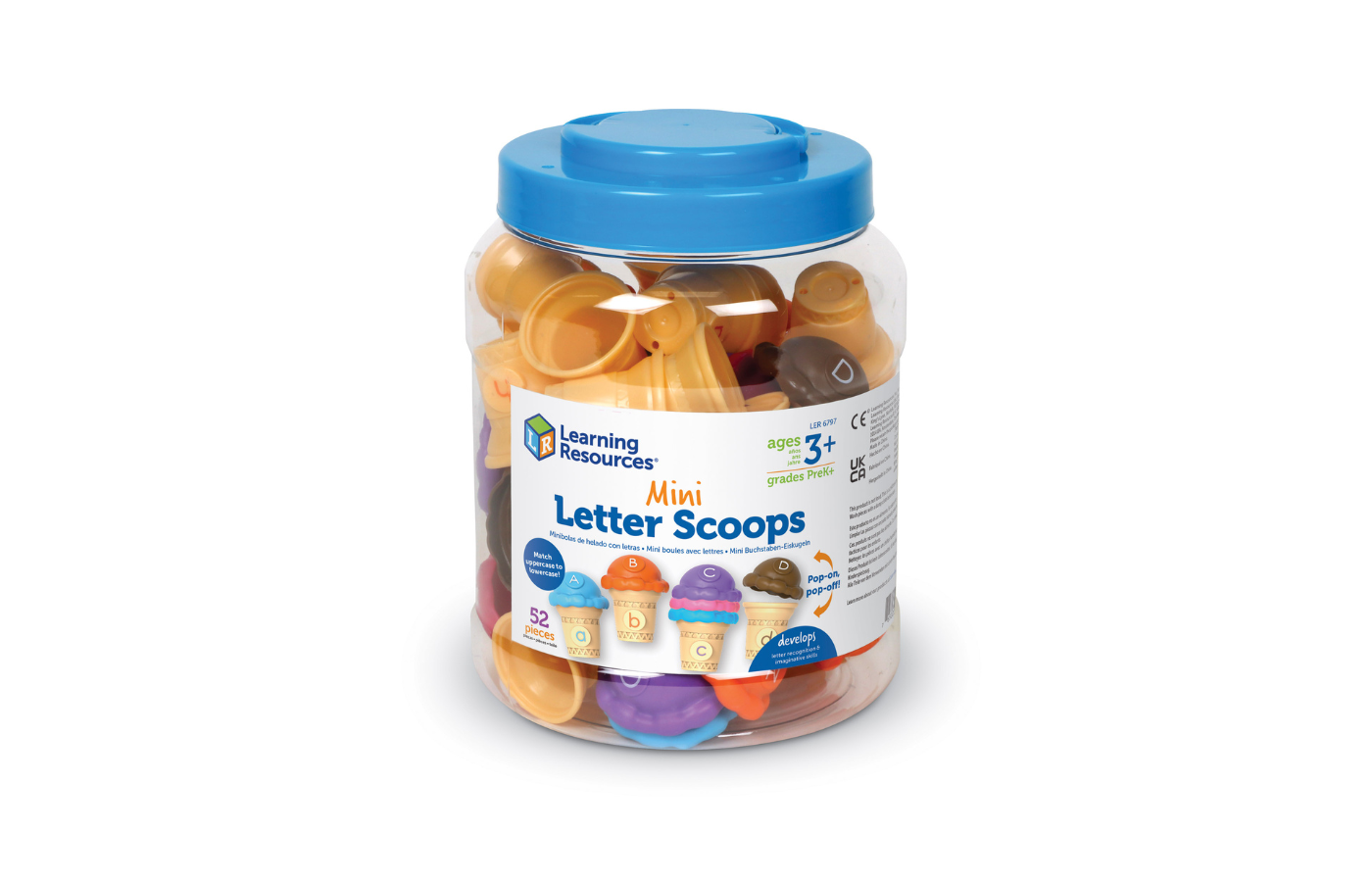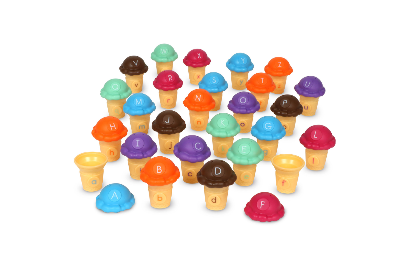 52-delige letter ijsjes (26 bollen, 26 hoorntjes (afm. 4 x 4 cm)