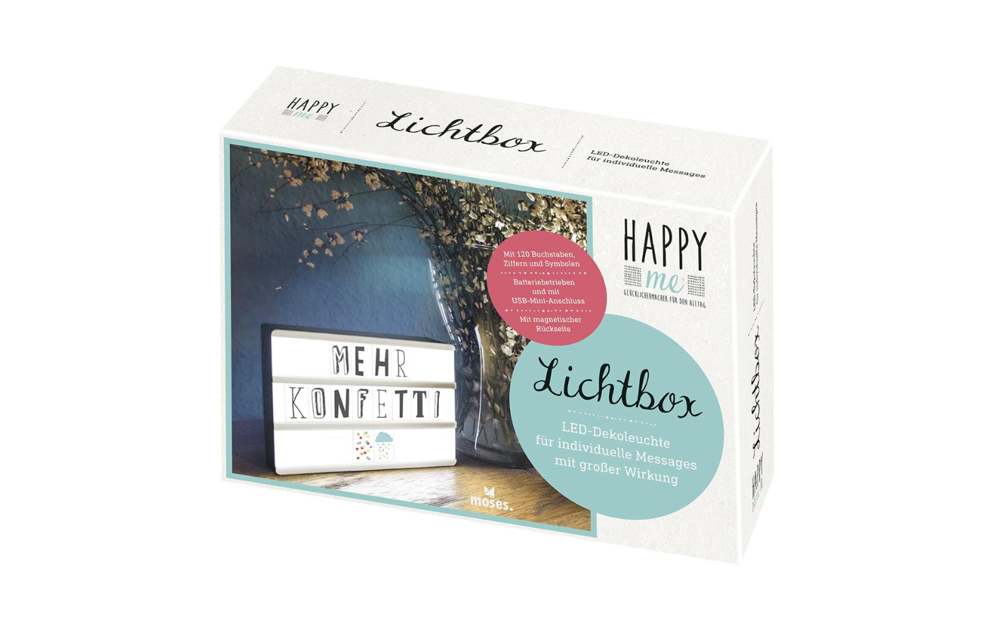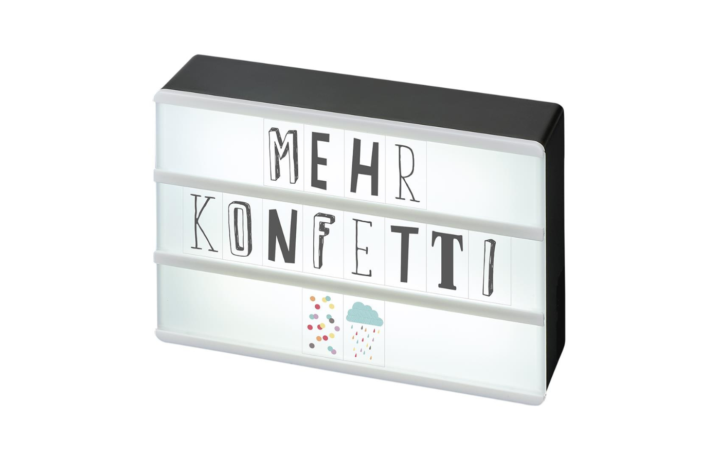 Compacte lichtbox met magnetische achterkant. Een echte lichtbox maar dan met magnetische achterkant. Handig voor op je koelkast, magneetbord, whiteboard, etc! Met LED verlichting. Geschikt voor 3 rijen letters met 120 letters, cijfers en symbolen. Met batterijen (4 xAA inbegrepen) en mini USB aansluiting! Gemaakt van kunststof. Afmeting: 15cm x 10,5cm x 4cm. Wordt geleverd in mooie geschenkverpakking!