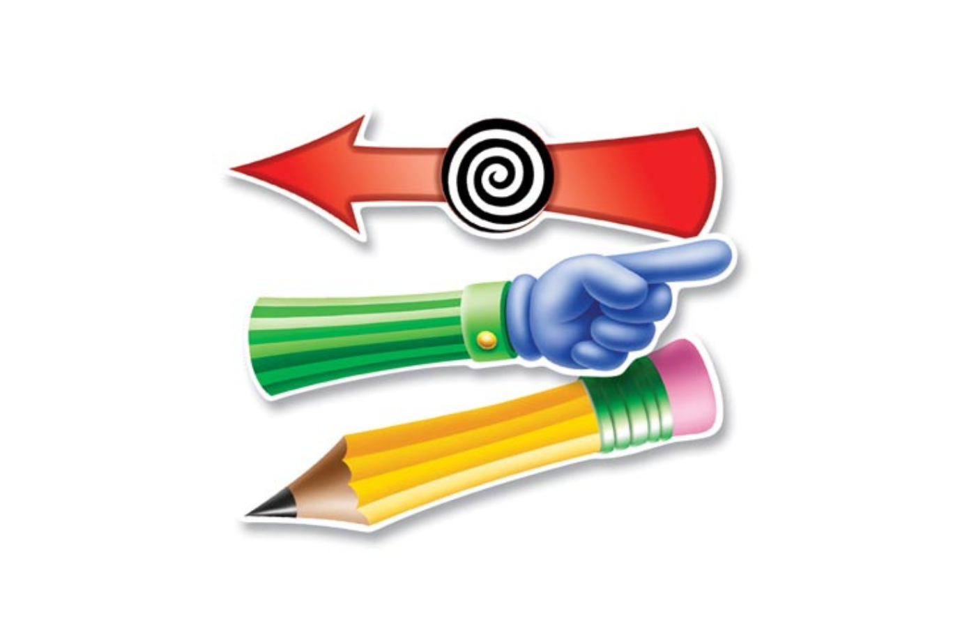 Drie magnetische gigantische spinners in de vorm van een pijl, potlood en een wijzende hand.