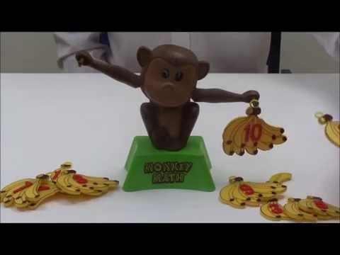 Hang een gelijk aantal kleurrijke bananen aan elk hand van de aap. Als de aantallen gelijk zijn en de optelsom is juist, zal de aap recht vooruit kijken en zijn zijn armen horizontaal. Als de aantallen niet gelijk zijn, zullen zijn ogen naar onder en naar boven kijken en zullen zijn armen op en neer gaan. Dat betekent dat het tijd is om het opnieuw te proberen!