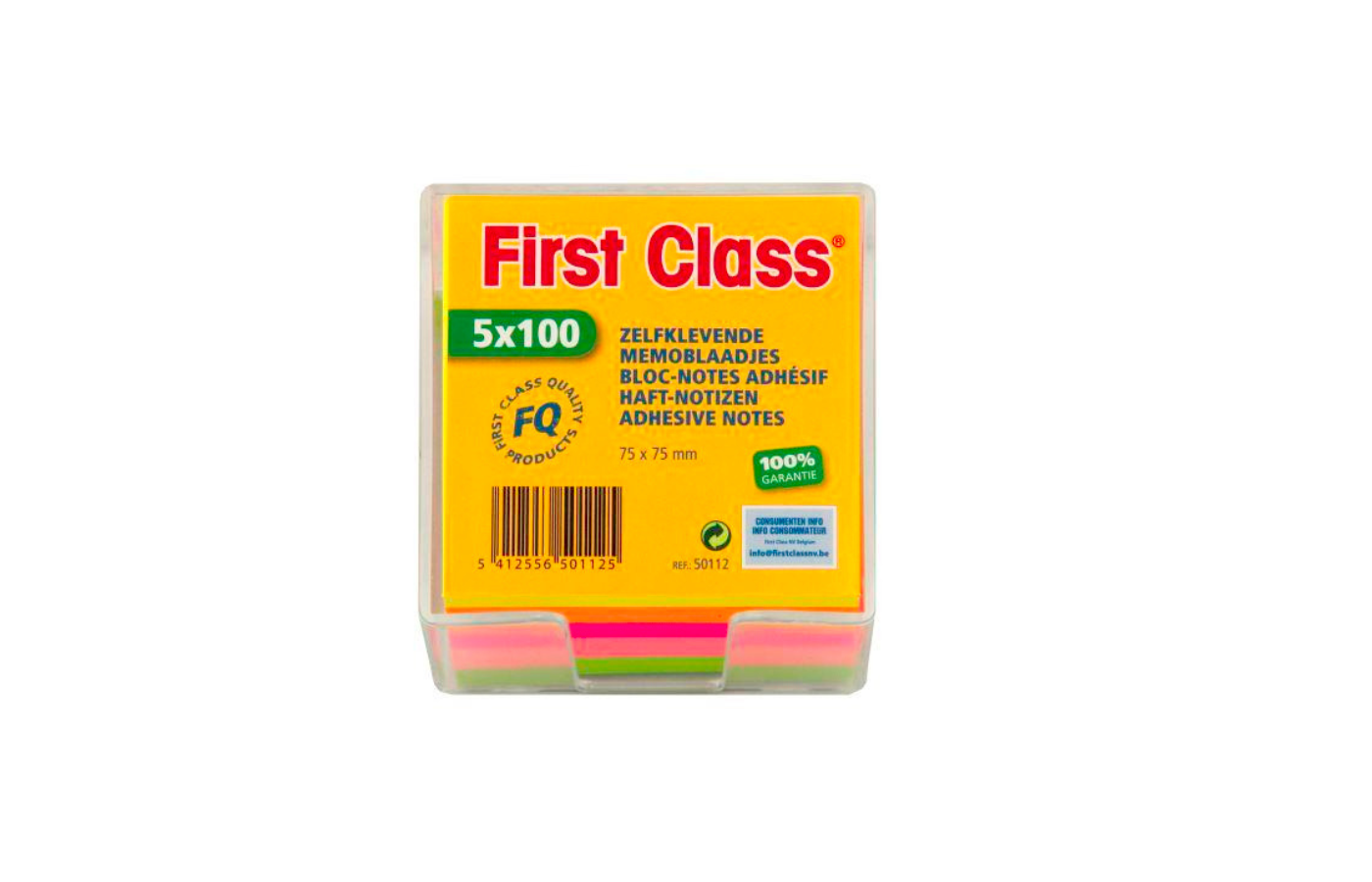 1 notitieblok - 5 x 100 vellen - gekleurd (afm. 7,5 x 7,5 cm)