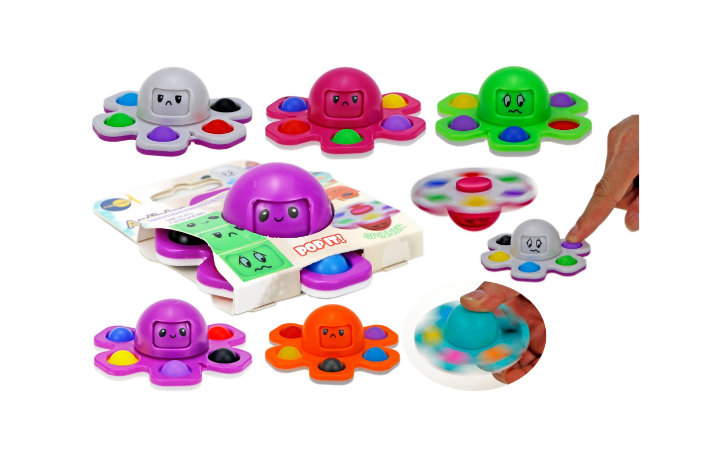 Fidget popper, spinner en octopus stemmingsmeter in elkaar.