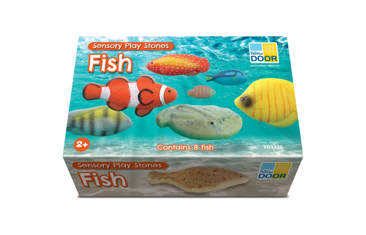 8-delige set met sensorische speelstenen - vissen (afm. 7 - 9 cm)