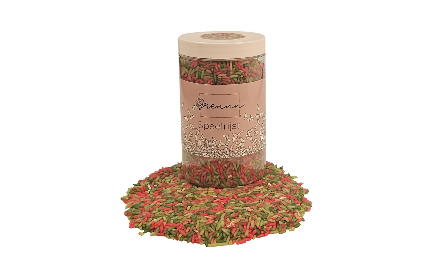 voorraadpot van 750 gram speelrijst. (keuze uit geel, blauw, groen, rood, oranje, oceaan mix, Kerstmis mix, pastel mix of ruimte mix )