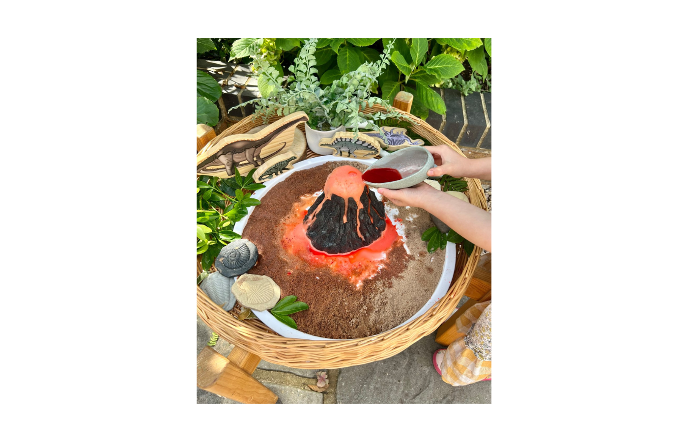 Deze vulkaan is gemaakt van een duurzame steenmix en is robuust en veelzijdig voor zowel binnen als buiten, modder, zand of water. Na het spelen is het eenvoudig schoon te maken.