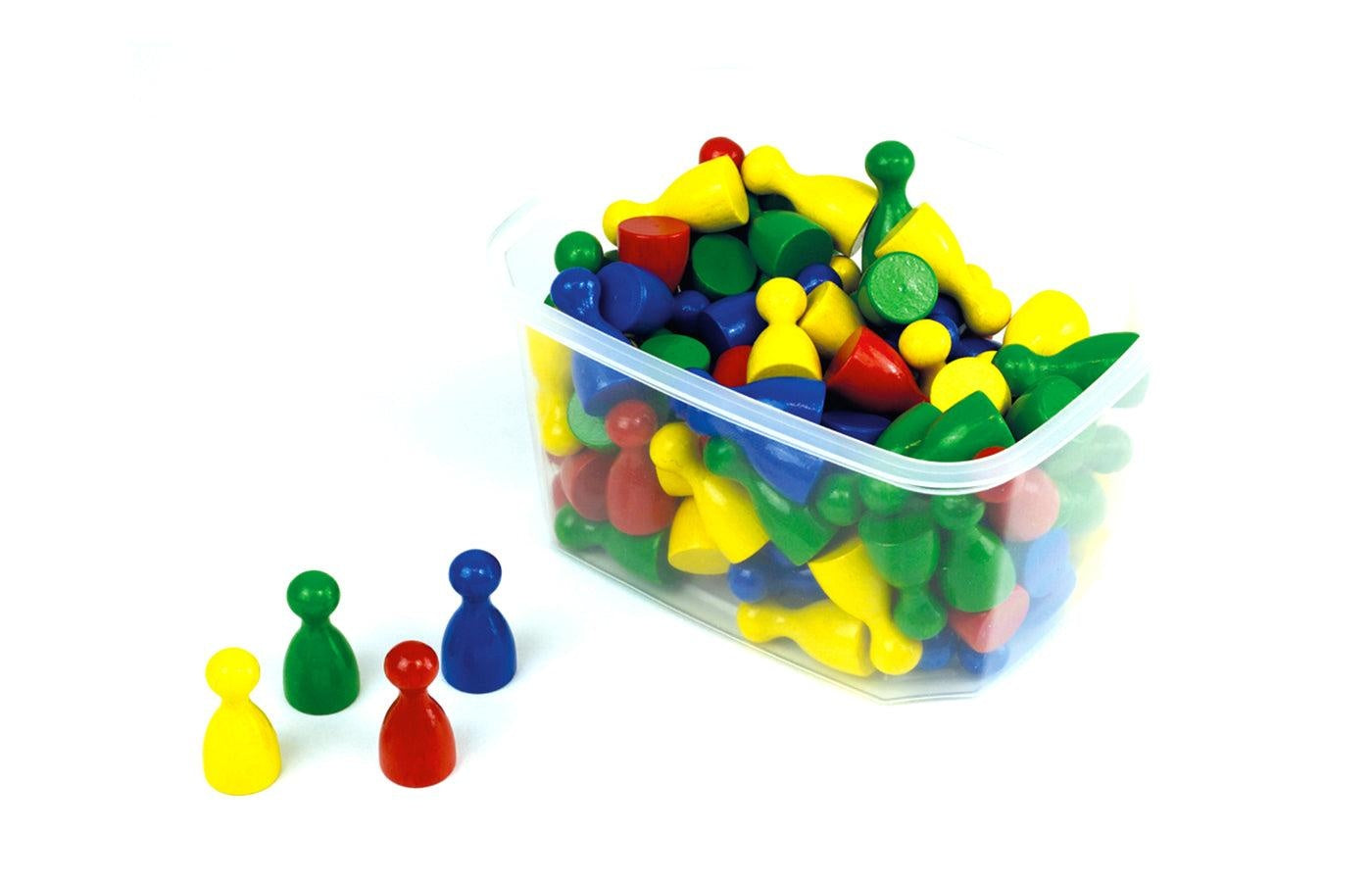 Deze set bevat 20 spelpionnen in de kleuren rood, groen, blauw en geel. Ze zijn geschikt voor spellen, groeps- en projectwerk of om bestaande sets aan te vullen of uit te breiden. Daarnaast kunnen ze ook ingezet worden bij rekenen, tellen, sorteren, wegen of gebruikt worden voor rollenspellen.