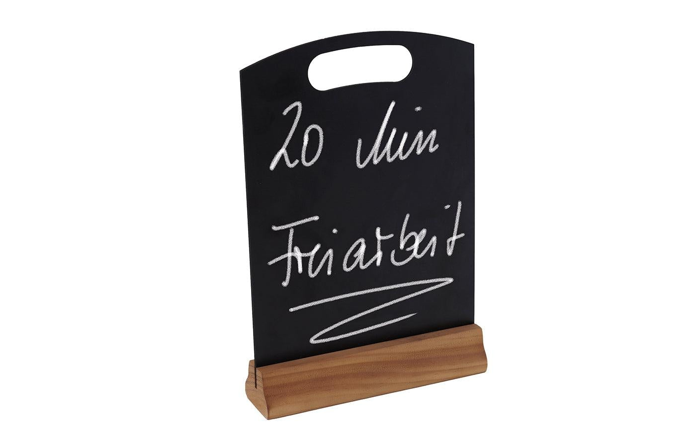 Een krijtbord in een houten standaard te gebruiken voor verschillende doeleinden. Bijvoorbeeld in je winkeltje om de promoties aan te kondigen, of de menu in je restaurantje.