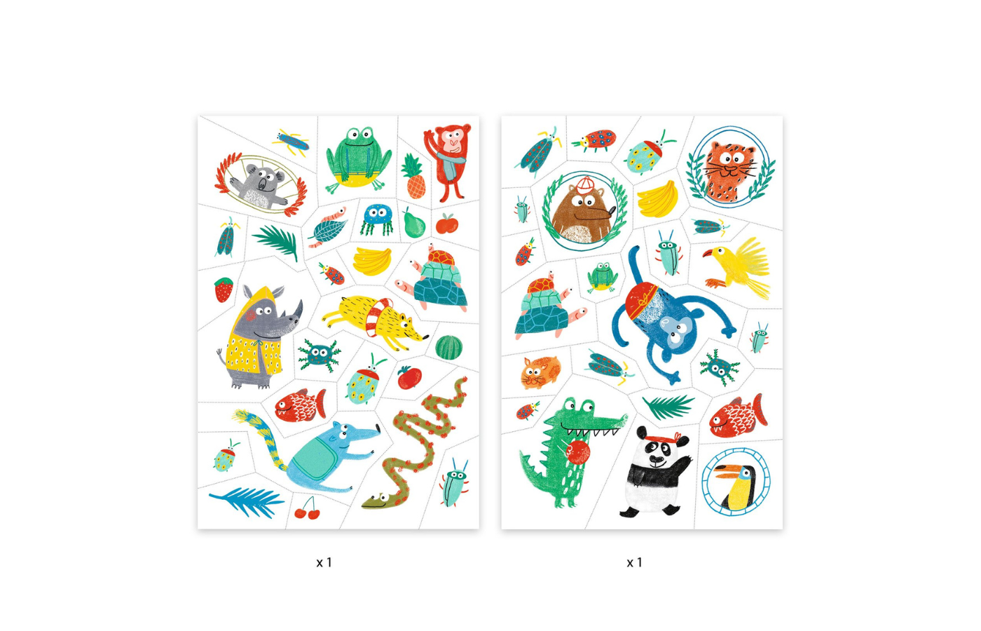 2 stickervellen tattoos - gekke dieren (afm. 21 x 14 cm)