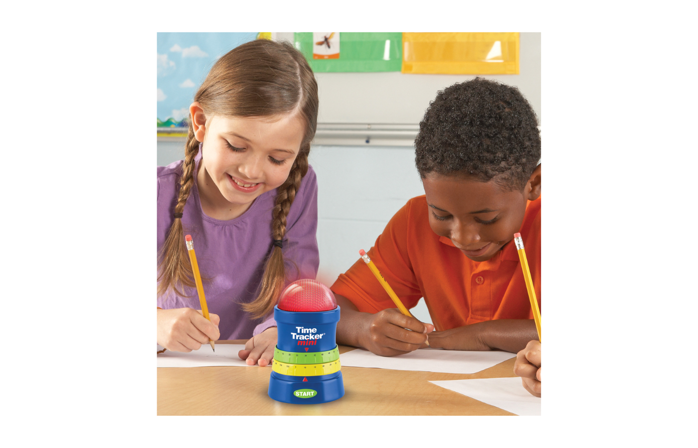 Deze Time Tracker is een eenvoudige timer met 3 gekleurde lampjes en een optioneel alarm, dit geeft kinderen visuele en auditieve aanwijzingen voor hun getimede activiteiten.