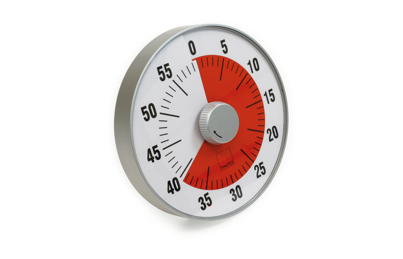 Deze teruglopende klok toont leerlingen tot op de minuut hoeveel tijd er rest om een opdracht af te ronden. Bijzonder is, dat de tijd weergeven wordt op een normale wijzerplaat, die de kinderen van een gewone klok kennen, en de gekleurde schijf erop loopt terug.