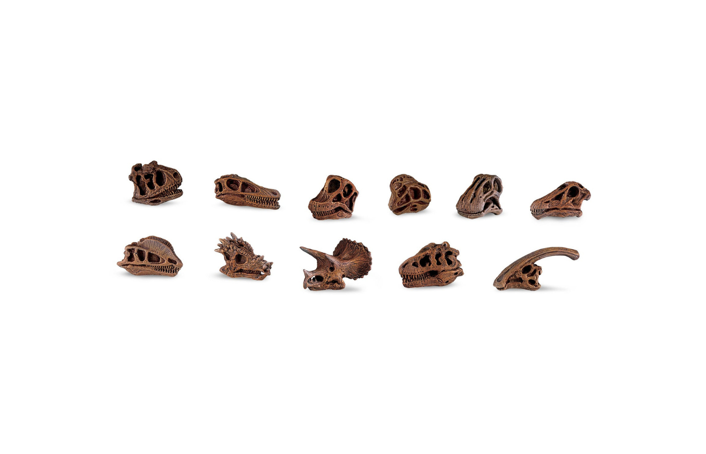 Deze leuke speelfiguren in het thema dinosaurus schedels zijn levensecht en daardoor zeer leerzaam. Fijn om te gebruiken bij een thematafel of in de speelhoek. Ze kunnen in het (kinetisch) zand, in de sneeuw, buiten, in de modder en in het water worden gebruikt. De figuurtjes zijn handig om te gebruiken om bijvoorbeeld de fijne motoriek te oefenen, woordenschat en kleuren te oefenen, te sorteren, te leren tellen enz.