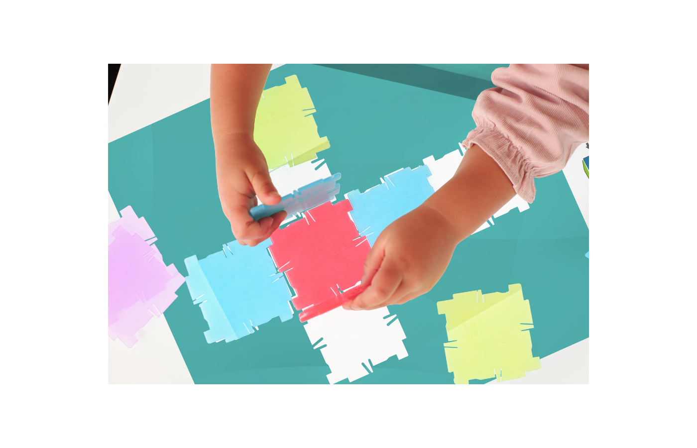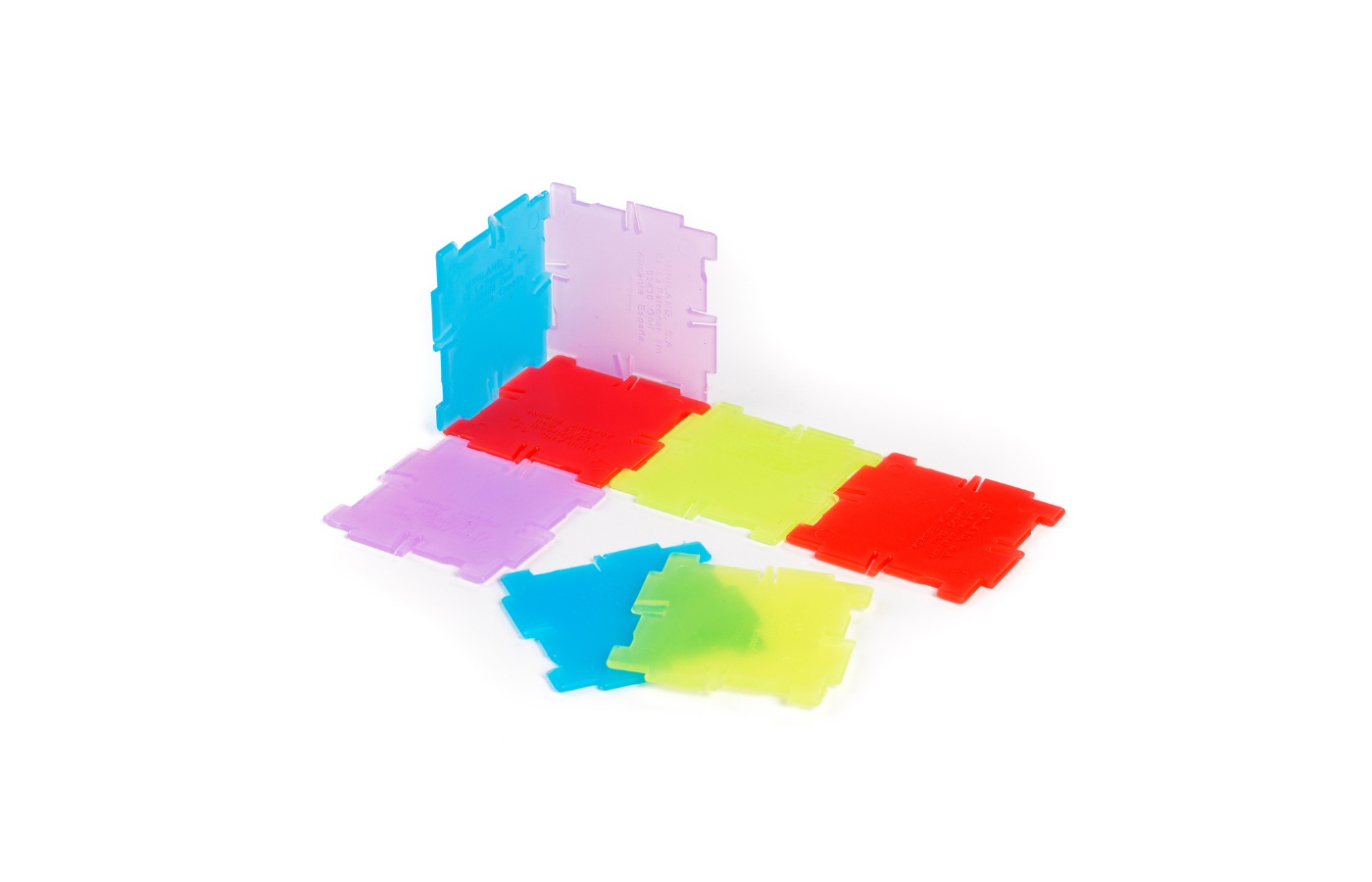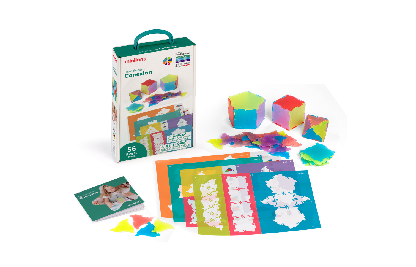 Set van 56 connectoren om veelvlakken en volumetrische vormen in 3 dimensies te bouwen. Bijgeleverde transparante opdrachtkaarten zijn zeer geschikt voor op de lichttafel. De opdrachtkaarten hebben een verschillende moeilijkheidsgraad.