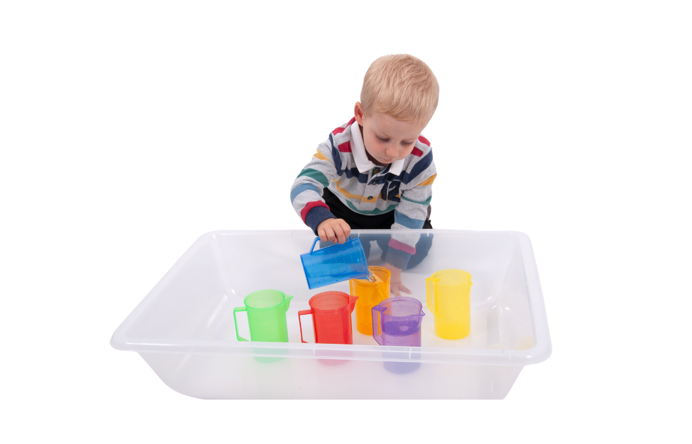Deze transparante maatbekers zullen uw kind eindeloos plezier bezorgen, omdat ze de perfecte maat hebben voor kleine handen om te dragen en te gieten. Ideaal voor rommelig spel, het verkennen van zand- en waterpret, het transporteren van verschillende materialen om te onderzoeken, leren over meten en volume en voor kleurmatching.