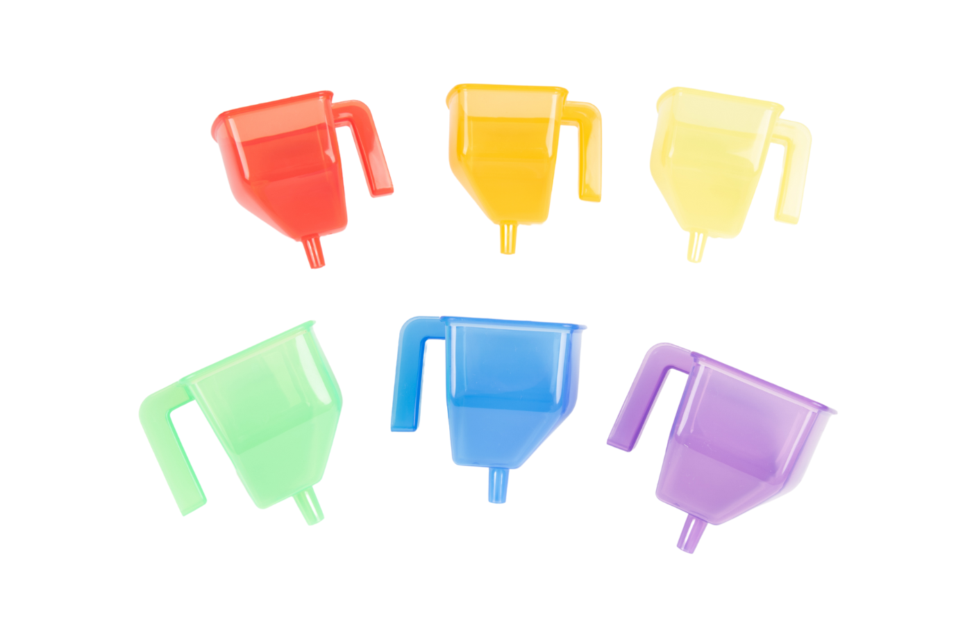 Transparante trechters zal uw kind eindeloos plezier bezorgen, omdat ze de perfecte maat hebben voor kleine handen om ze te stapelen en te dragen.